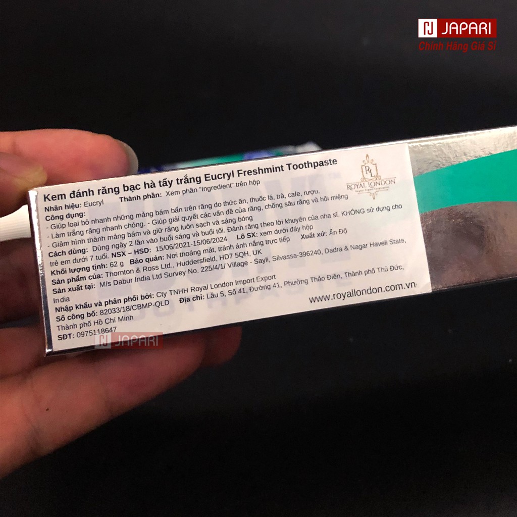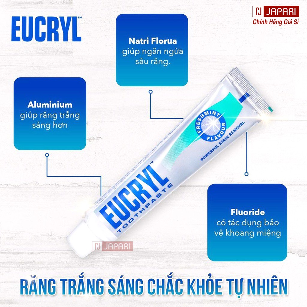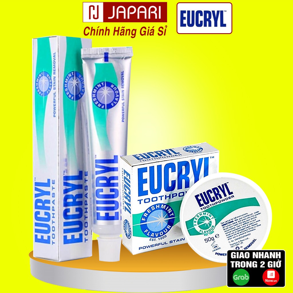 Kem Đánh Răng + Bột Tẩy Trắng Răng Eucryl CHÍNH HÃNG - Kem Làm Trắng Răng Thơm Miệng - JAPARI