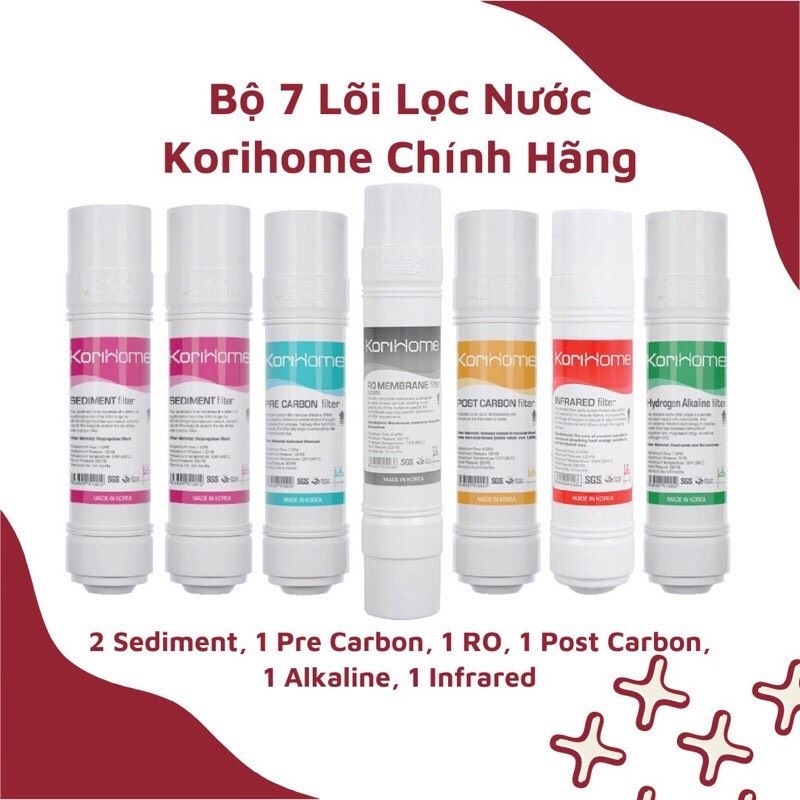 Trọn bộ 7 lõi Korihome (2sed - pre - RO - Far - Post - Alkaline) dùng thay thế cho máy Korihome WPK-903, WPK-928, WPK906