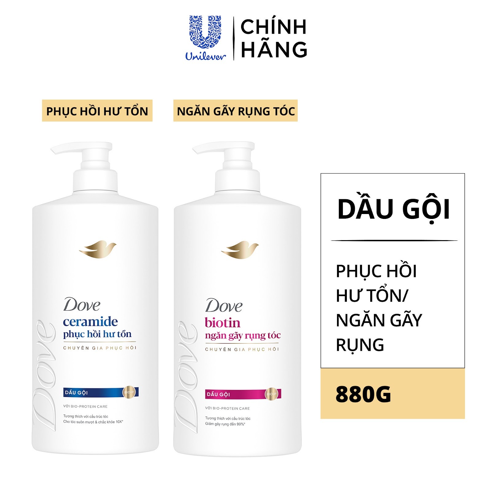 Dầu gội Dove Ceramide Phục hồi hư tổn/Biotin Ngăn gãy rụng tóc 880g