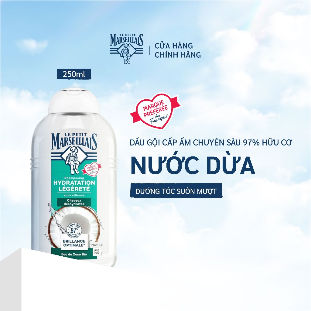 Dầu Gội Cấp Ẩm Chuyên Sâu 97% Thiên Nhiên Le Petit Marseillais Chiết Xuất Dừa Hữu Cơ 250ml 7429