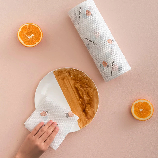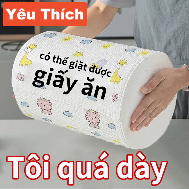Nhà bếp dùng một lần Khăn rửa chén hấp thụ dầu đa năng cuộn giấy hấp thụ dầu lười lau giẻ lau bộ đồ ăn có thể giặt được Khăn rửa chén (màu ngẫu nhiên)