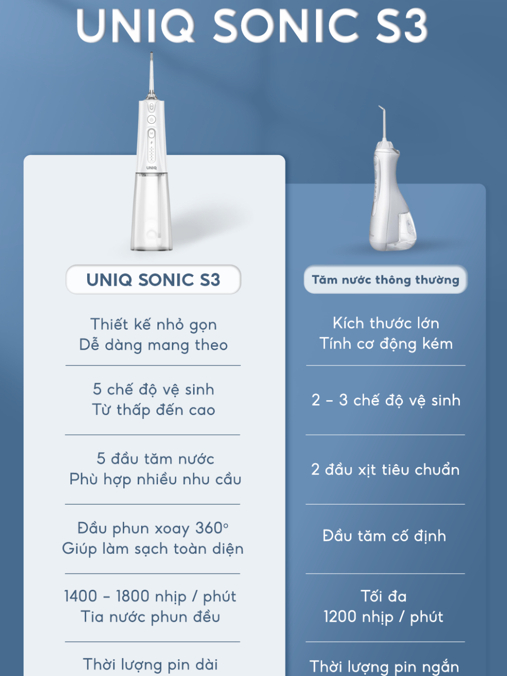 Tăm nước UNIQ Sonic S3 máy tăm nước mini vệ sinh răng miệng tam nuoc du lịch cầm tay nhỏ gọn chống thấm nước