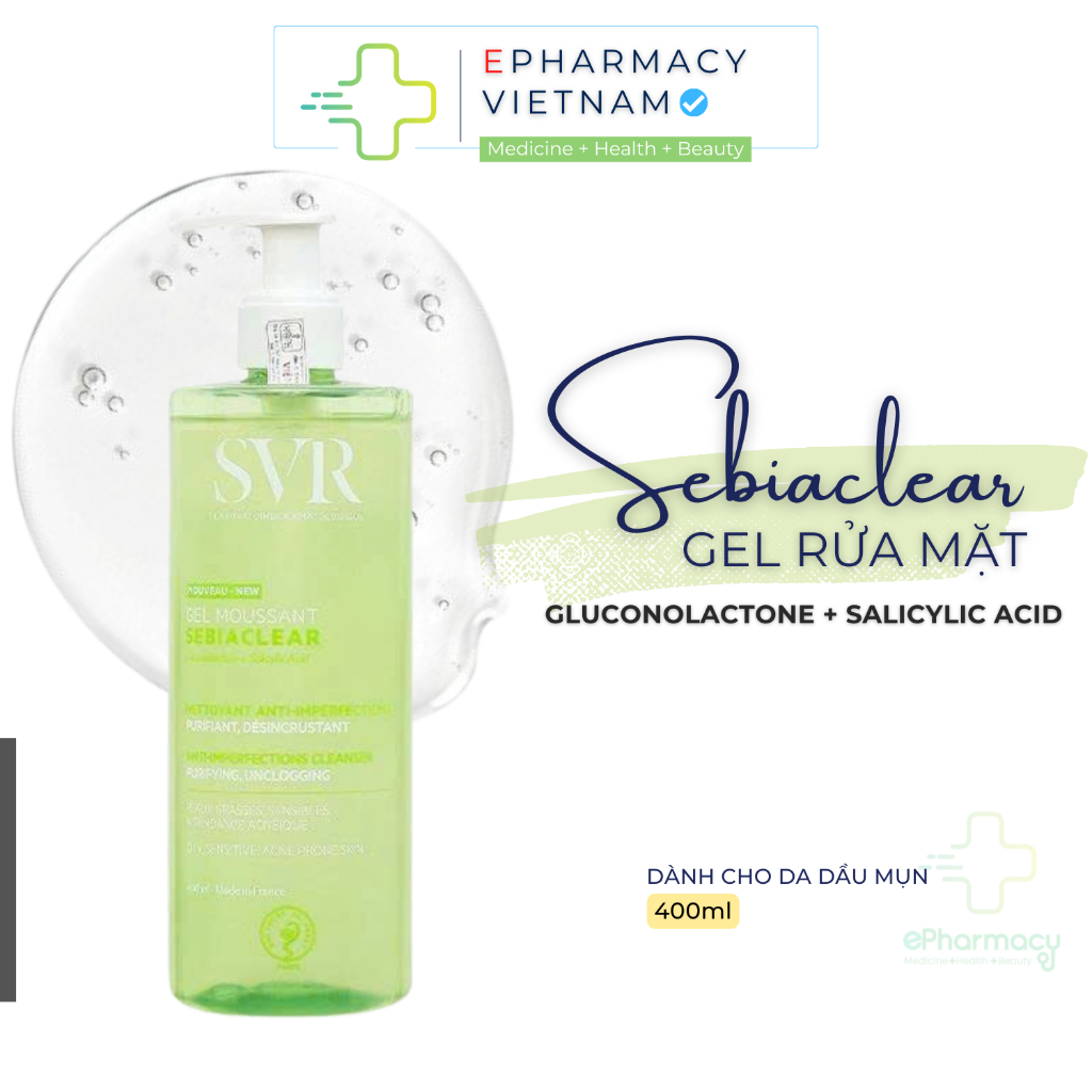 Gel Rửa Mặt SVR Sebiaclear Gel Mousant Không Chứa Xà Phòng, Làm Sạch & Loại Bỏ Tế Bào Da Chết