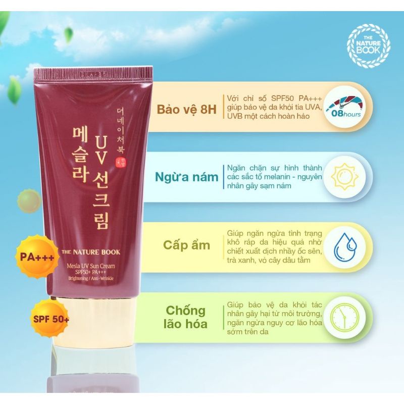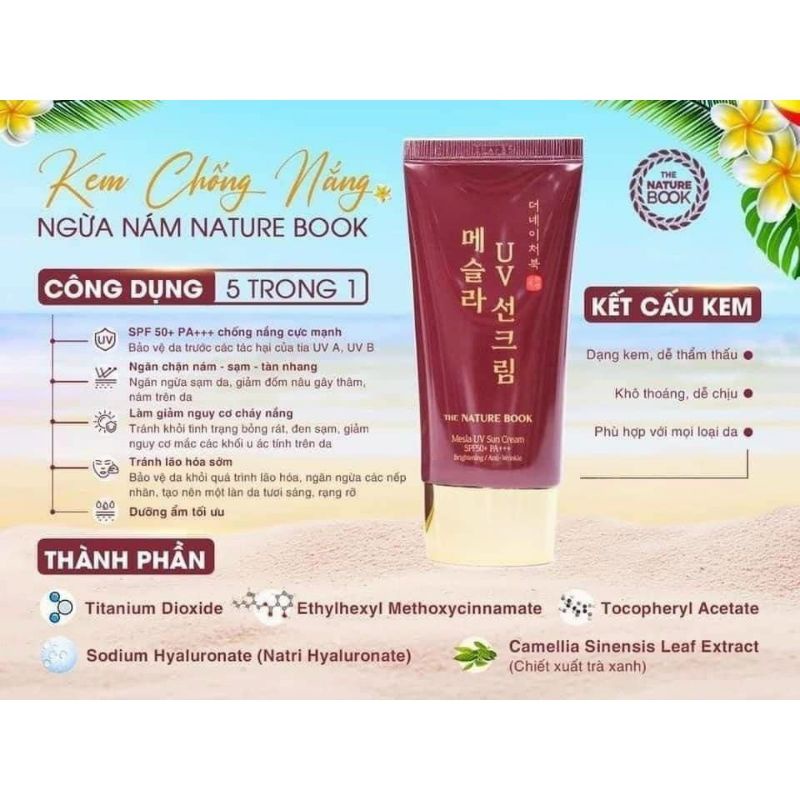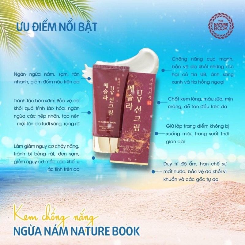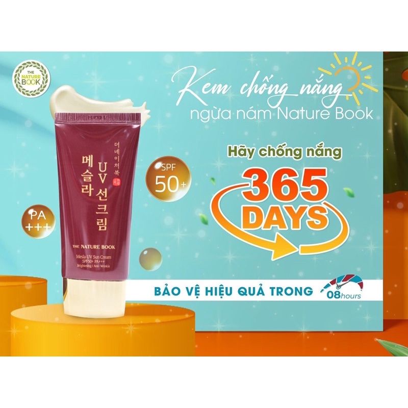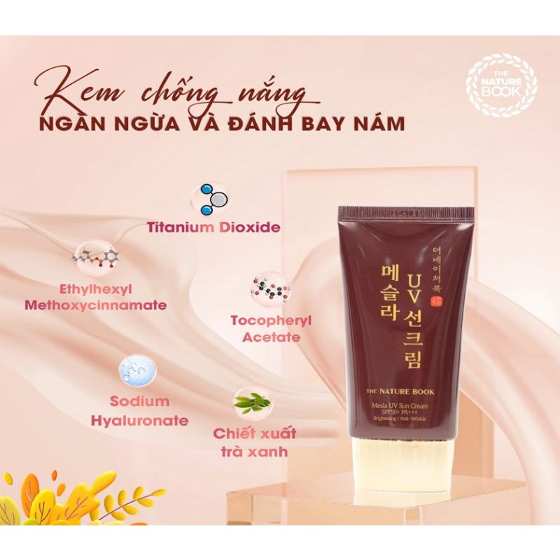 Kem chống nắng ngừa nám nature book, The Nature Book Mesla UV Sun Cream SPF50+ PA+++