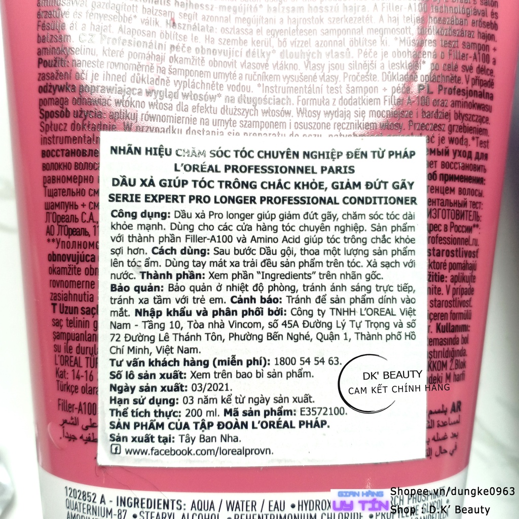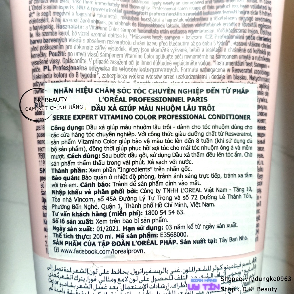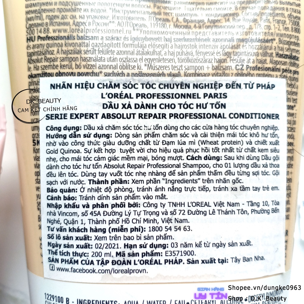 Dầu Xả L'Oréal Professionnel Phục Hồi Tóc, Giữ Màu Tóc, Chống Gãy Rụng 200ml