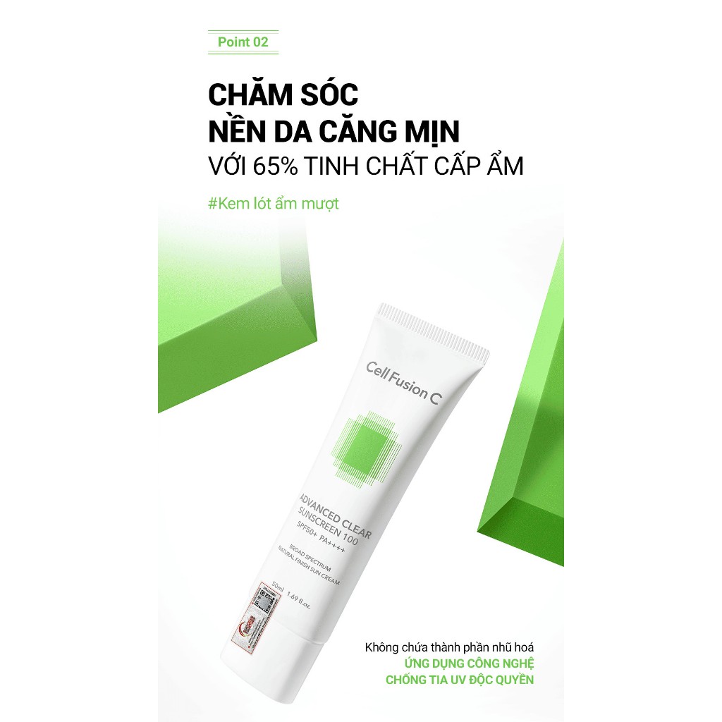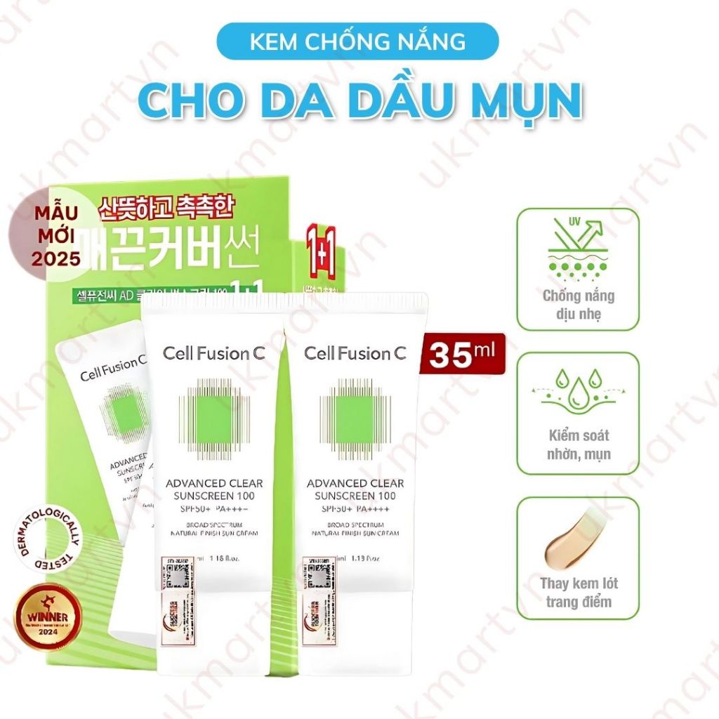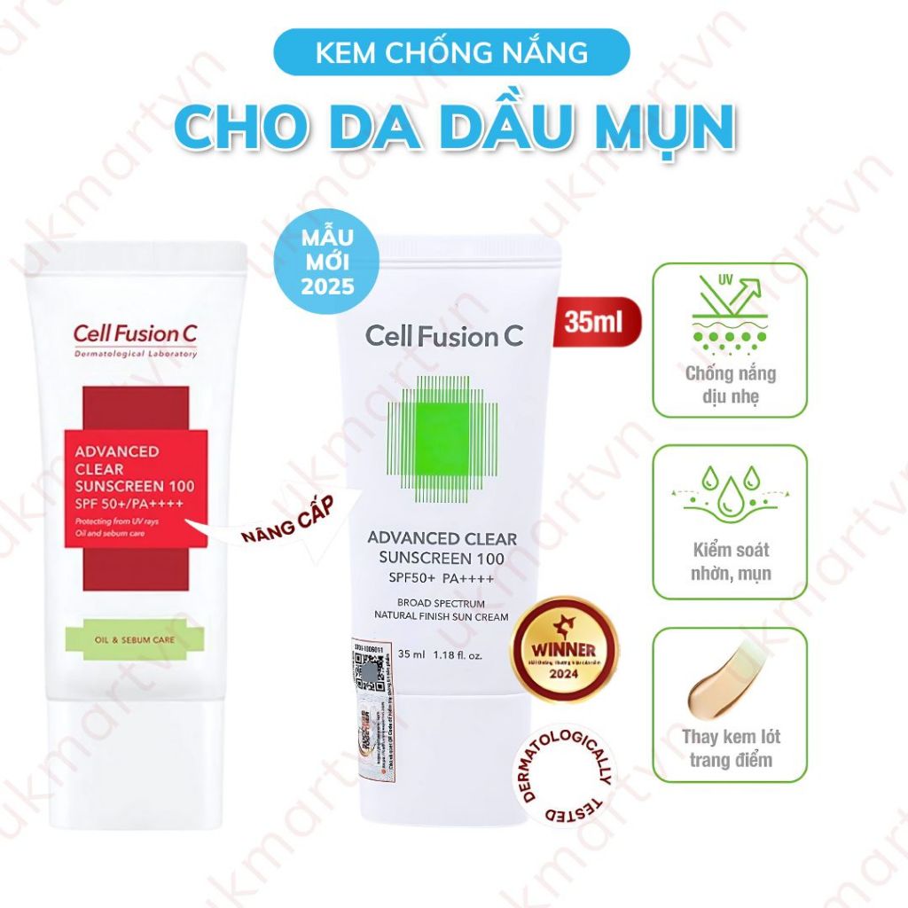 Kem Chống Nắng Phổ Rộng Kiểm Soát Dầu Mụn Cell Fusion C Advanced Clear Sunscreen 100 SPF50+ PA+ 35ml