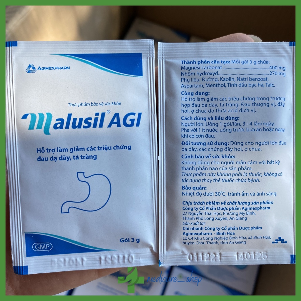 Dạ dày MALUSIL AGI, giảm nhanh đau dạ dày, giảm axit dịch vị, trào ngược thực quản, đầy hơi, ợ chua bao tử (Hộp 30 gói)