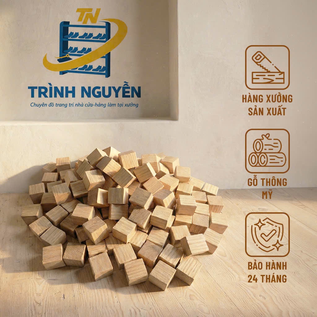 120 viên khối gỗ thông vuông 100% tự nhiên do xưởng sản xuất, khối gỗ đa năng xếp hình, cho bé tập đếm, sơn màu