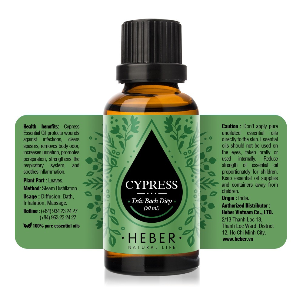Tinh Dầu Trắc Bách Diệp Cypress Heber Natural Life, Thiên Nhiên Nguyên Chất Cao Cấp, 10ml/30ml/50ml