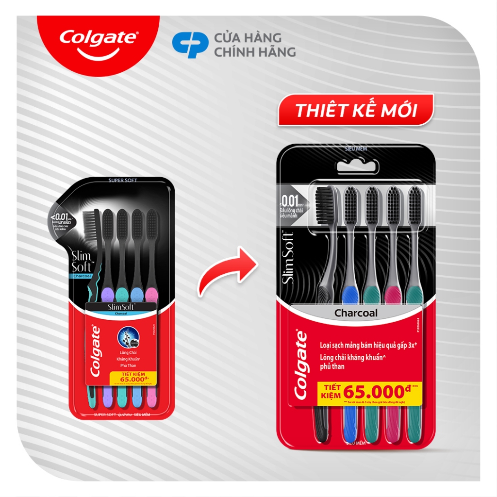 Bộ 10 Bàn chải Colgate SlimSoft Charcoal than hoạt tính kháng khuẩn siêu mềm mảnh