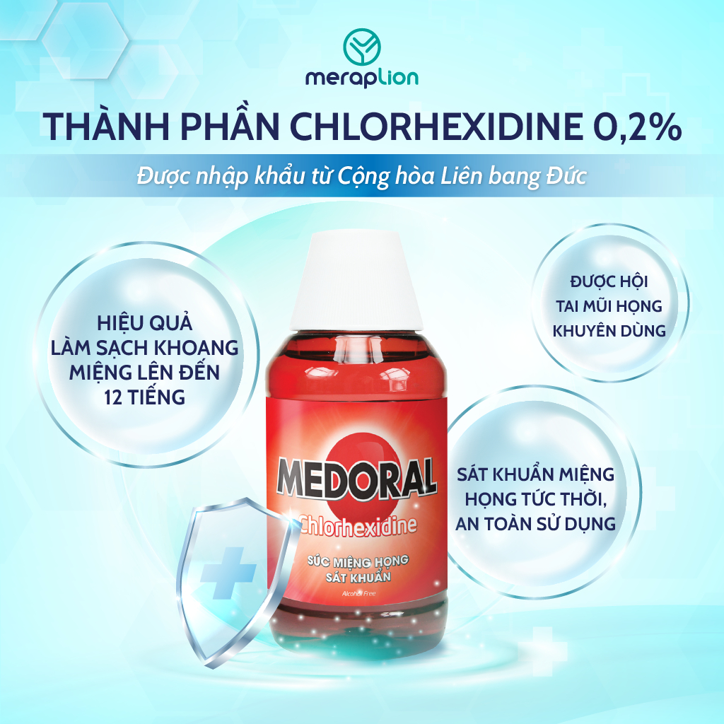 Nước súc miệng họng sát khuẩn MEDORAL 125ml hỗ trợ phòng ngừa nhiễm khuẩn miệng họng