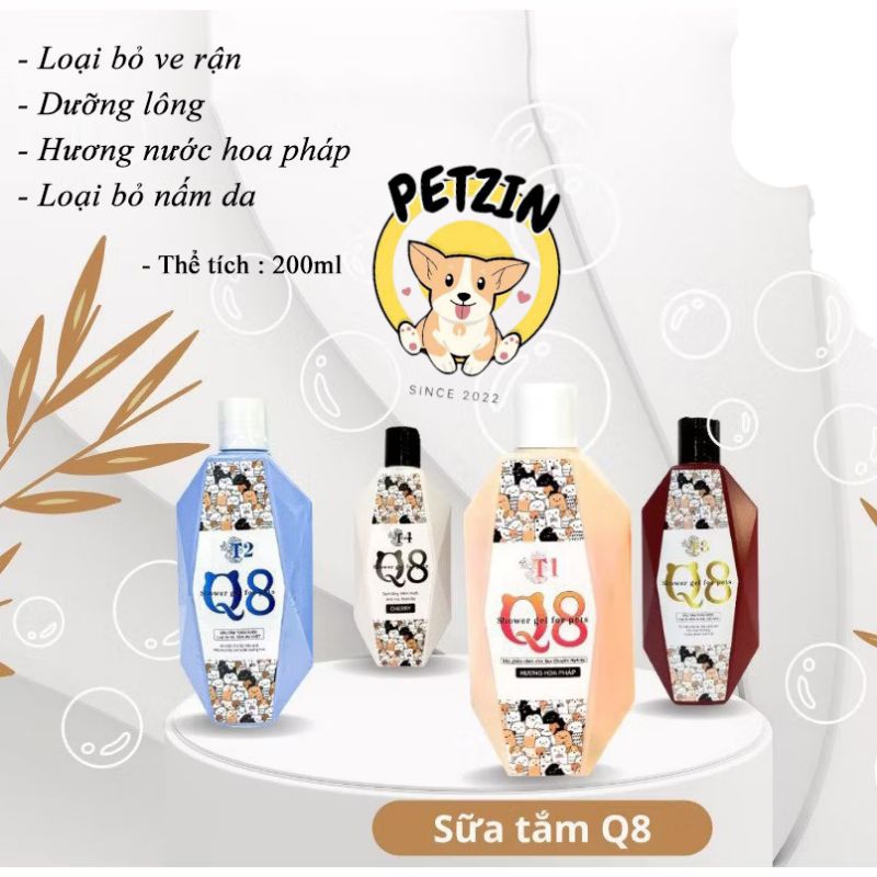 Sữa tắm gội cho thú cưng Q8 - ngăn ngừa ve rận , mùi thơm hương nước hoa , dưỡng lông , ngừa nấm da