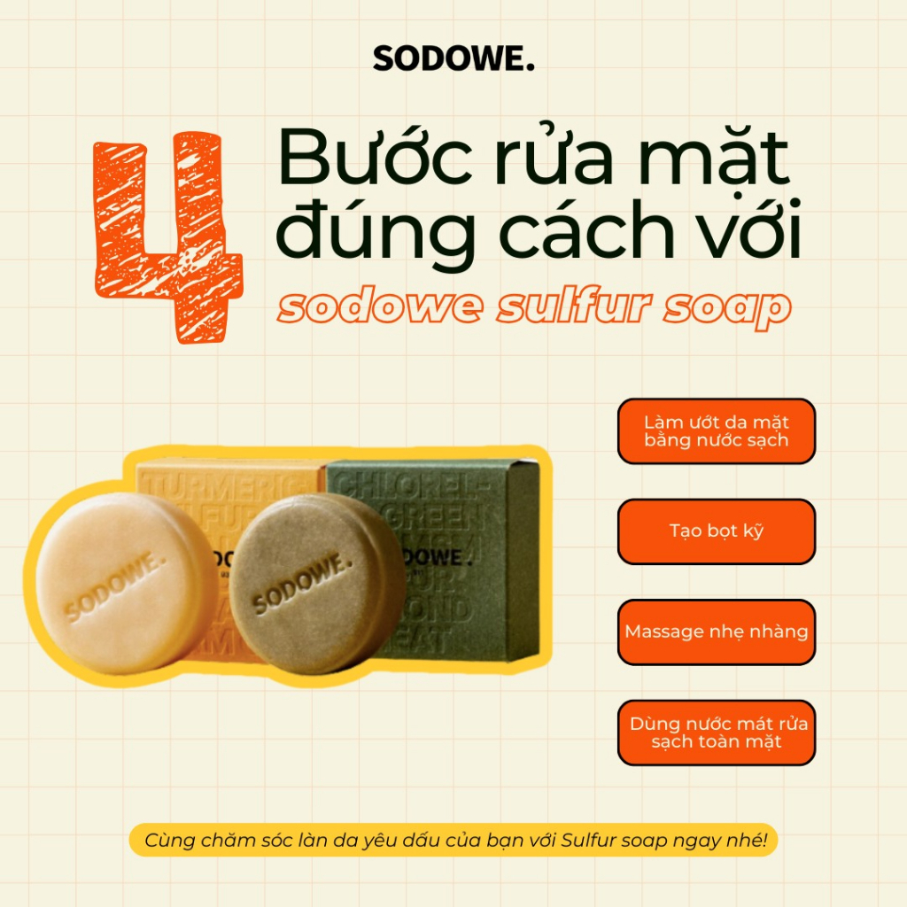 Xà phòng tắm SODOWE Relaxing Sulfur Body Soap - xà phòng lưu huỳnh sạch da & thư giãn cho cơ thể