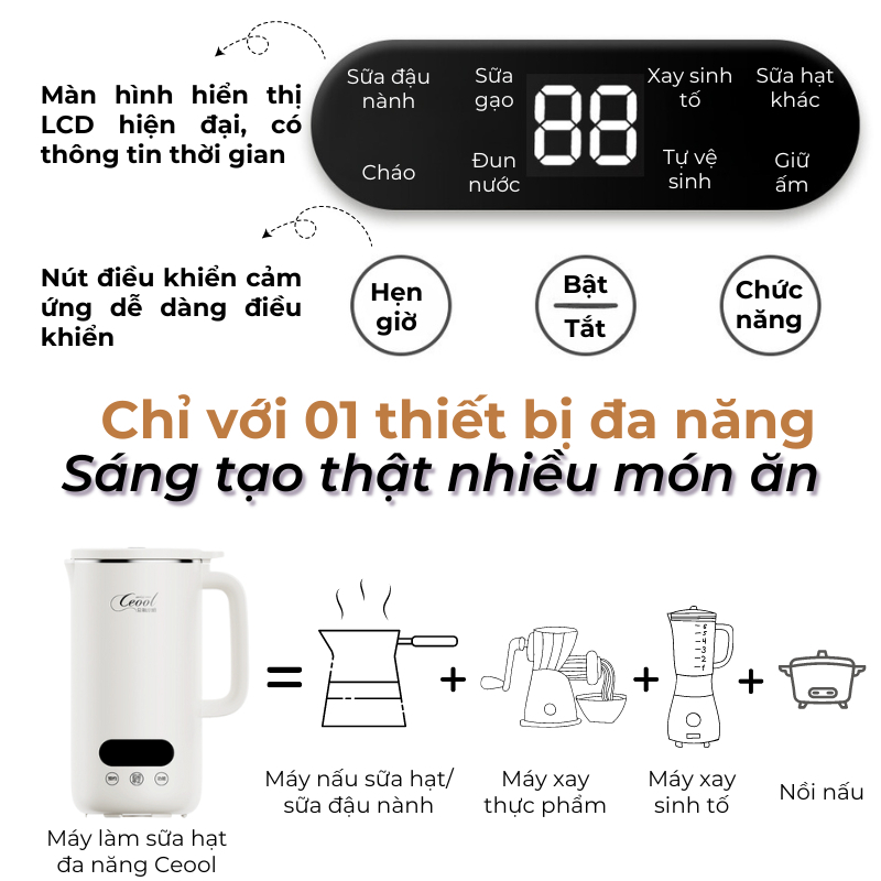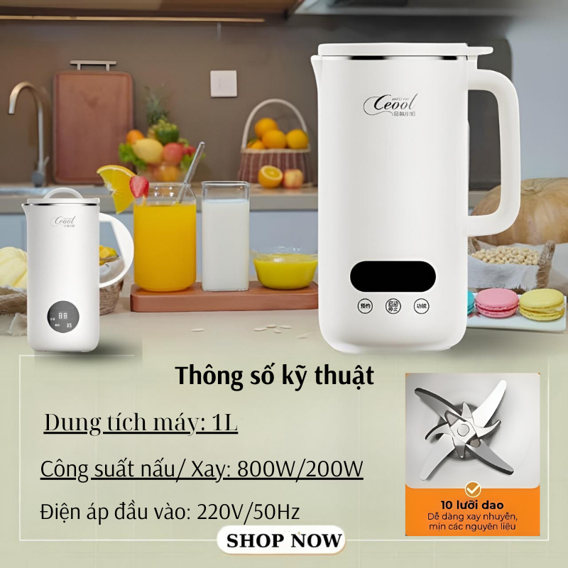 Máy làm sữa hạt Ceool chính hãng - Xay nấu tự động - Công suất 800W - Dung tích 1L