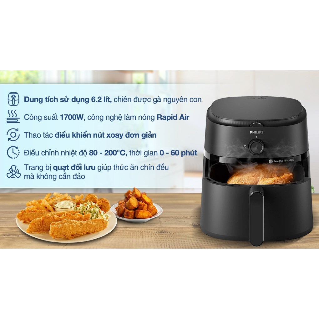 Nồi Chiên Không Dầu PHILIPS NA130 NA120 (4.2L - 6.2L) Núm Vặn Điều Chỉnh - Hàng Chính Hãng