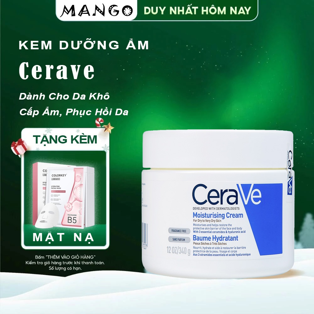 Kem Dưỡng Ẩm Cho Da Khô CERAVE 340G Giúp Da Trắng Sáng Mềm Mịn, Thơm Hương Nước Hoa