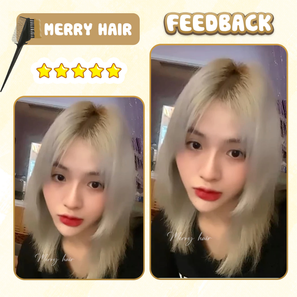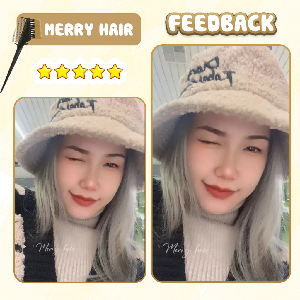 Thuốc nhuộm tóc, Thuốc nhuộm tóc màu Xám Trắng, không tẩy, Merry Hair, tặng kèm oxy trợ dưỡng và bao tay