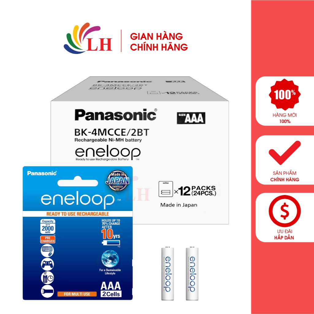 Pin sạc Panasonic Eneloop AAA 800mAh BK-4MCCE/2BT (24 viên) - Hàng chính hãng