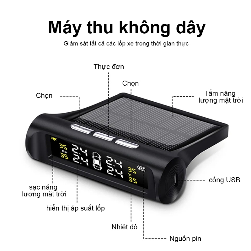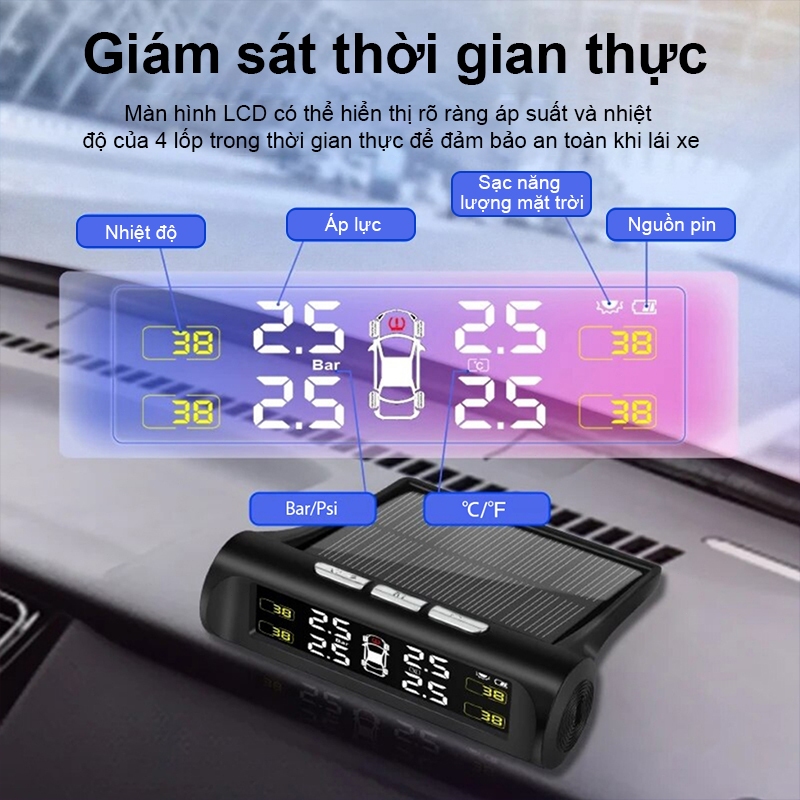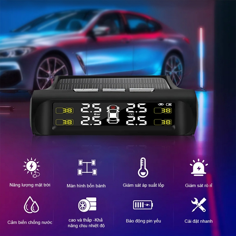🔥🔥【TPMS】Cảm Biến Áp Suất Lốp Ô Tô Lốp Van Ngoài TPMS Pin Sạc Năng Lượng Mặt Trời Màn Hình+Bảo Hành