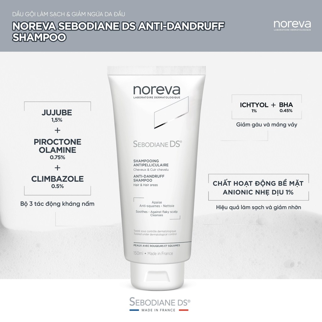 Dầu Gội Giảm Ngứa, Giảm Gàu Dành Cho Viêm Da Tiết Bã Noreva Sebodiane DS Anti-Dandruff Shampoo