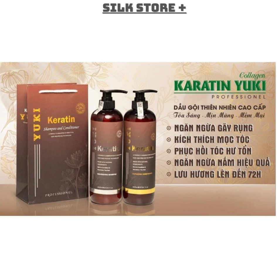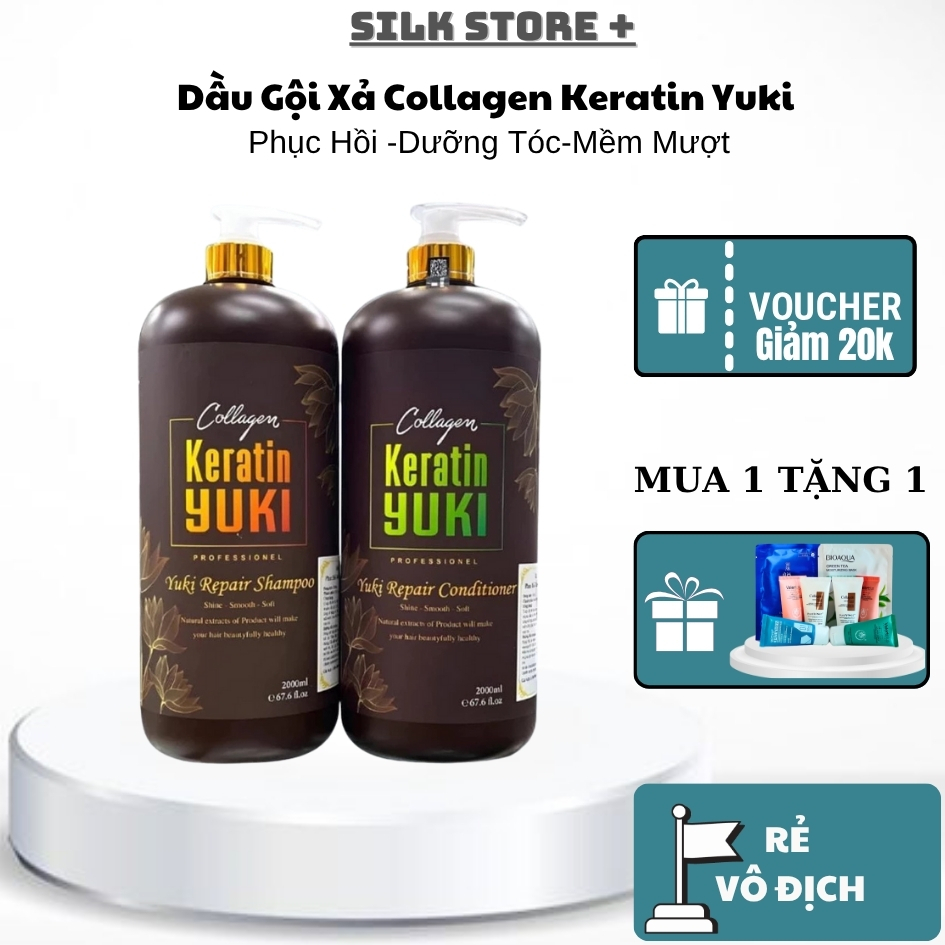 Dầu Gội Xả Collagen Keratin Yuki Silkstore+ Giảm Rụng Tóc Kích Mọc Tóc Phục Hồi Tóc Hư Tổn Mềm mượt