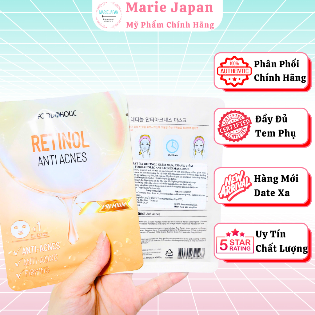 Mặt Nạ Tinh Chất Foodaholic Retinol, Peptide, Hyaluronic Acid, Beta Arbutin Premium 23ml