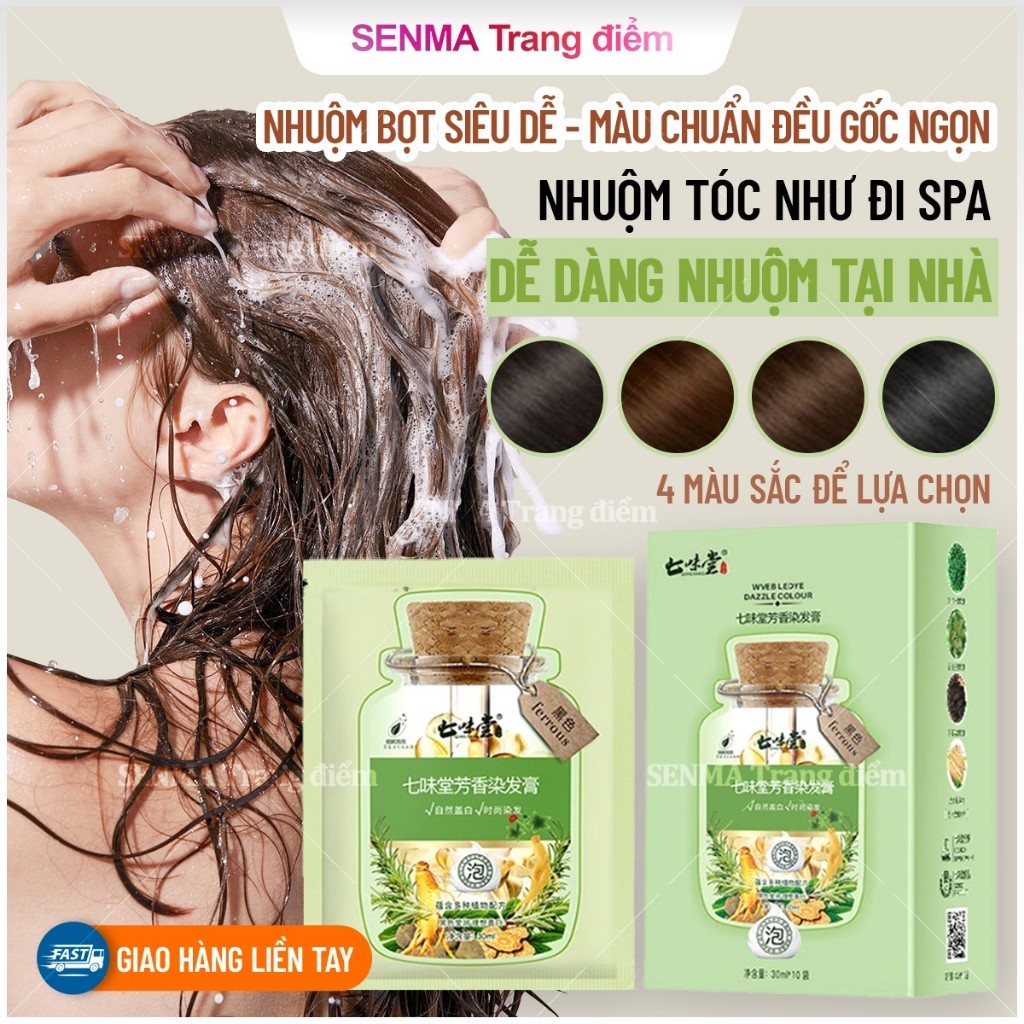 Dầu Gội Nhuộm Tóc Thảo Dược 10 Gói 300ml-Phủ Bạc Tự Nhiên,Lên Màu Chuẩn Đen/Nâu & Dưỡng Tóc Mềm Mượt
