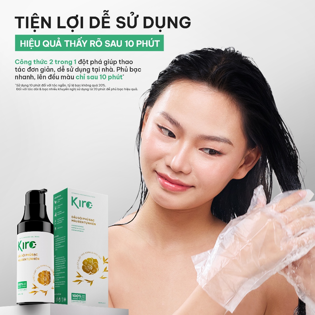[Mua 1 tặng 1] Dầu gội phủ bạc KIRO - Màu Đen Tự Nhiên - Lành Tính - Chiết xuất thiên nhiên - Tặng Mặt Nạ Tóc