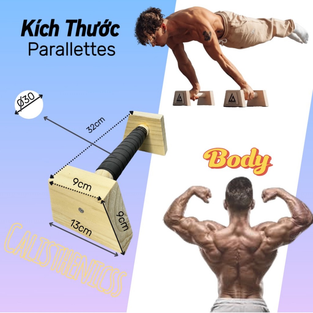 Parallettes gỗ thông dụng cụ hít đất, chống đẩy tập cơ ngực,planche,handstand,hướng dẫn tập calisthenics, gym, yoga
