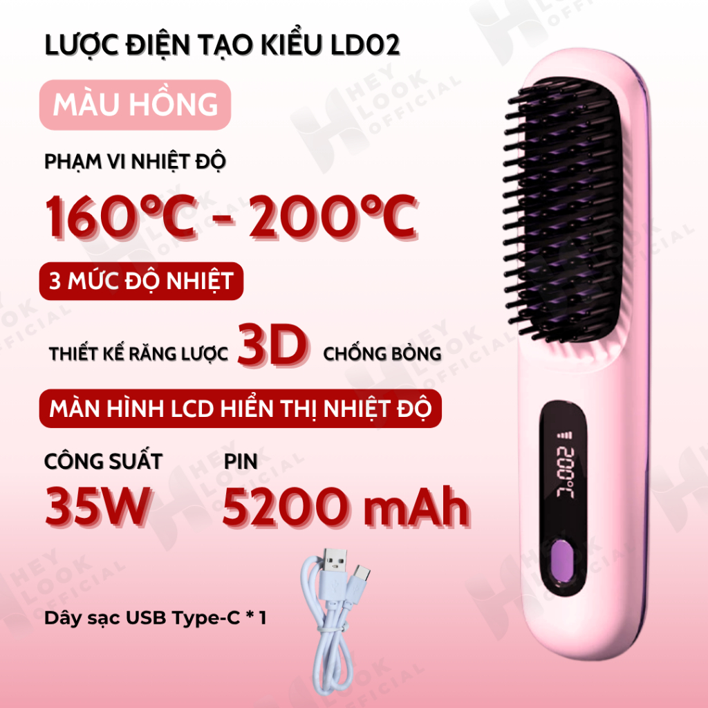 Lược Điện Chải Tóc Ion Âm Lược Duỗi Thẳng Chất Lượng Cao 50 Triệu Ion Âm Bảo Vệ Tóc