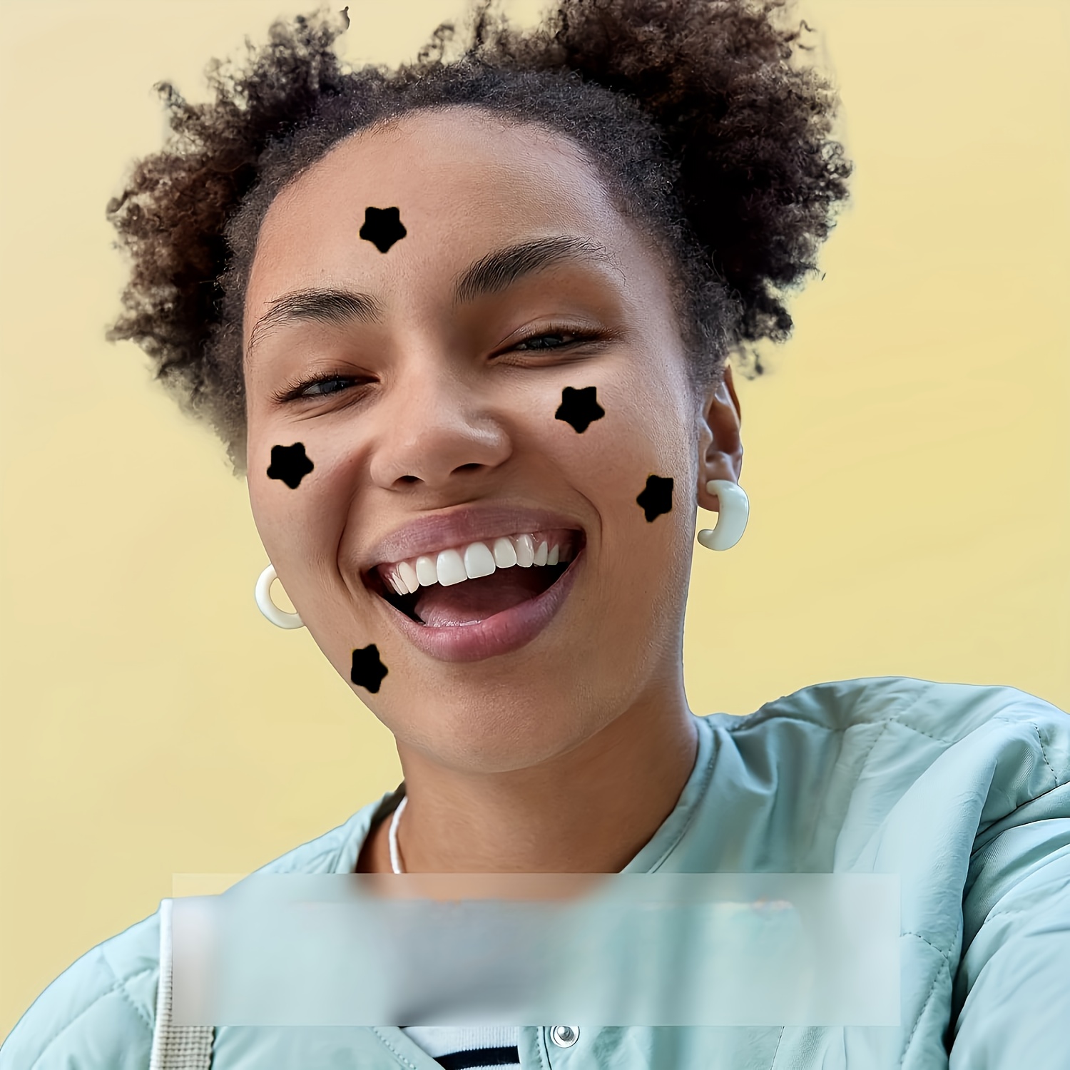 Miếng dán mụn 400 cái, màu đen hình ngôi sao, miếng dán hydrocolloid, miếng dán trang trí mặt cho kỳ nghỉ, miếng dán trang điểm, phù hợp với mọi tông da màu be nhạt.