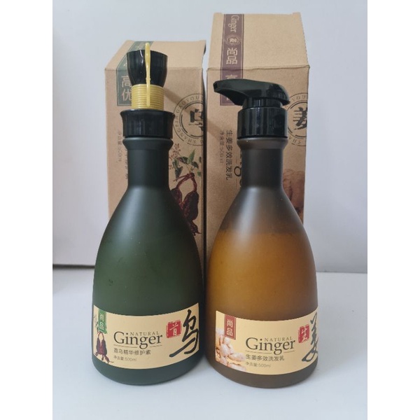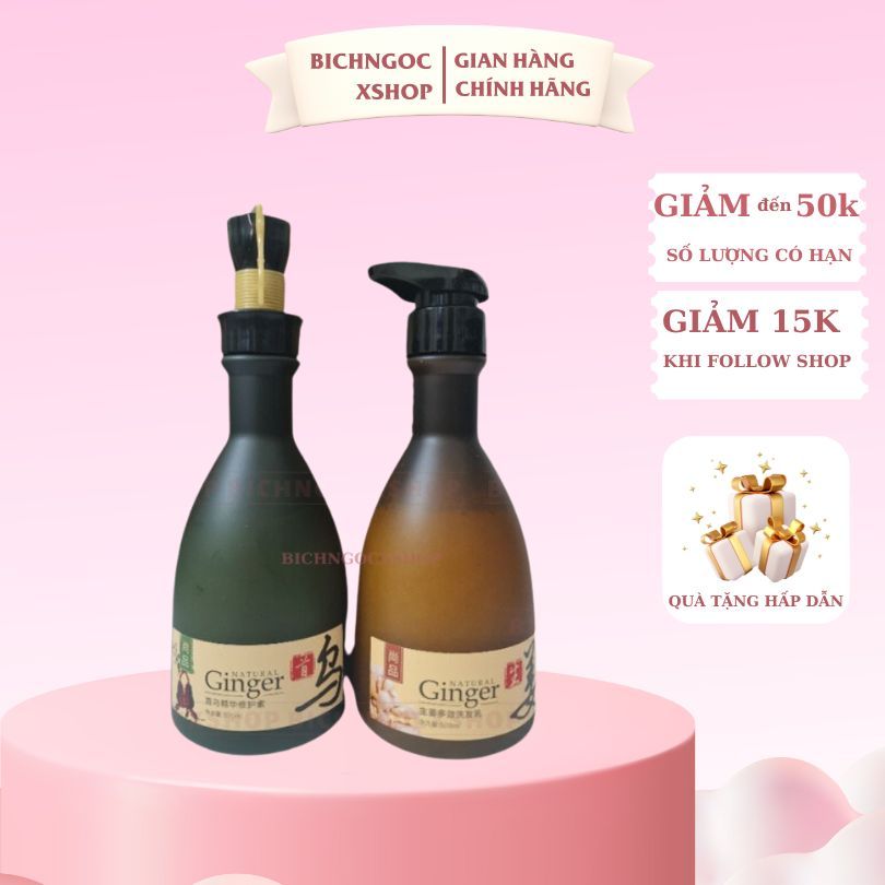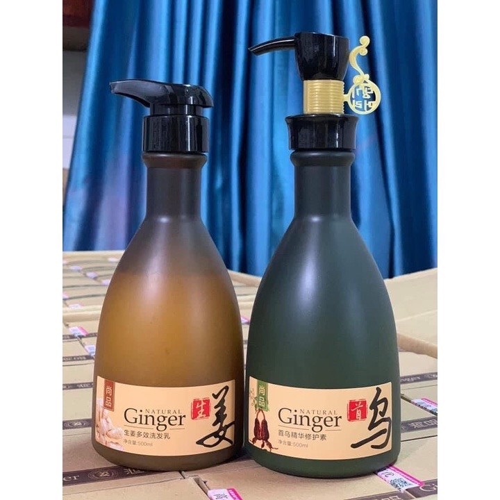 Cặp dầu gội xả Gừng Thiên nhiên Natural Ginger 500ml ngăn dầu, gàu, kích mọc tóc tinh chất hà thủ ô