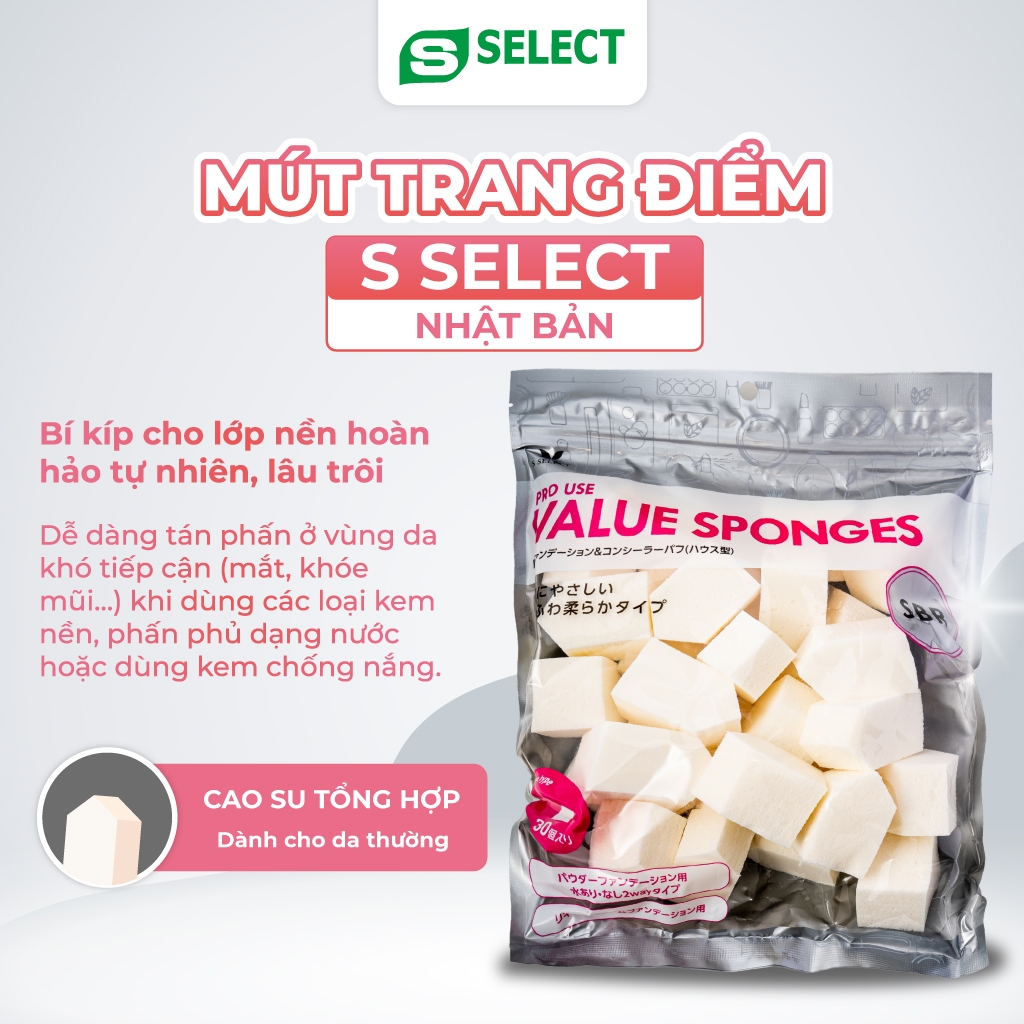 Mút Trang Điểm Từ Cao Su Nhân Tạo S Select Pro Use Nhật Bản (30 Chiếc/Gói)