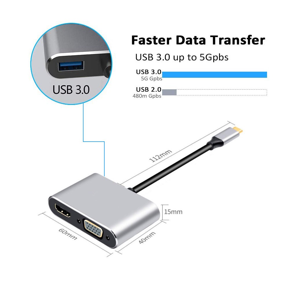 Bộ chuyển đổi 4 trong 1 USB c HDMI Type c sang HDMI 4K VGA USB3.0 Bộ chuyển đổi video âm thanh PD 87W Bộ sạc nhanh cho Macbook pro Samsung s9 s10