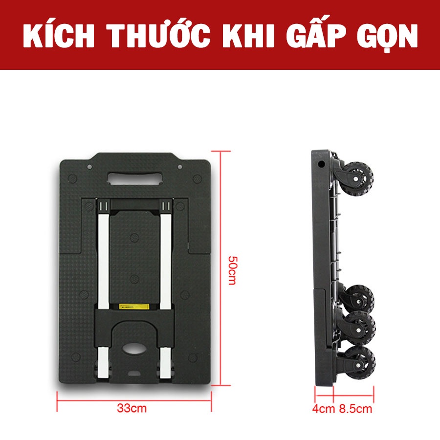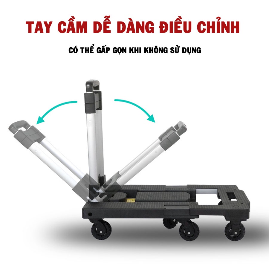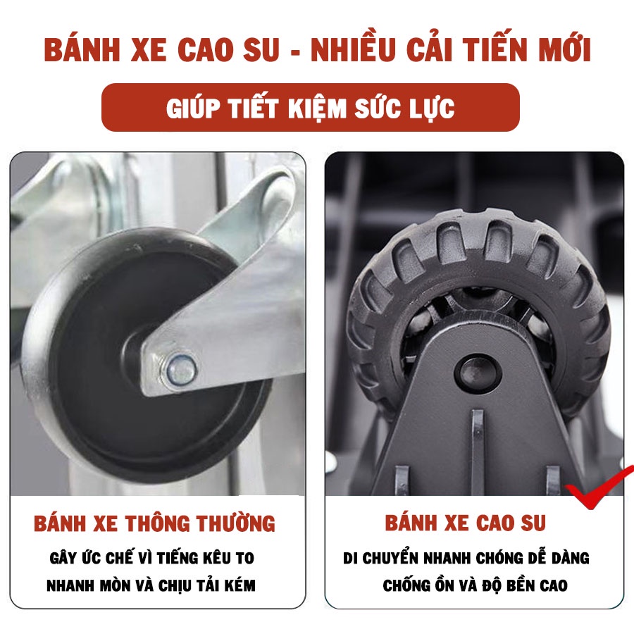 Xe Đẩy, Xe Kéo Hàng Gấp Gọn Bánh Xe Cao Su Chống Ồn Tải trọng Lớn