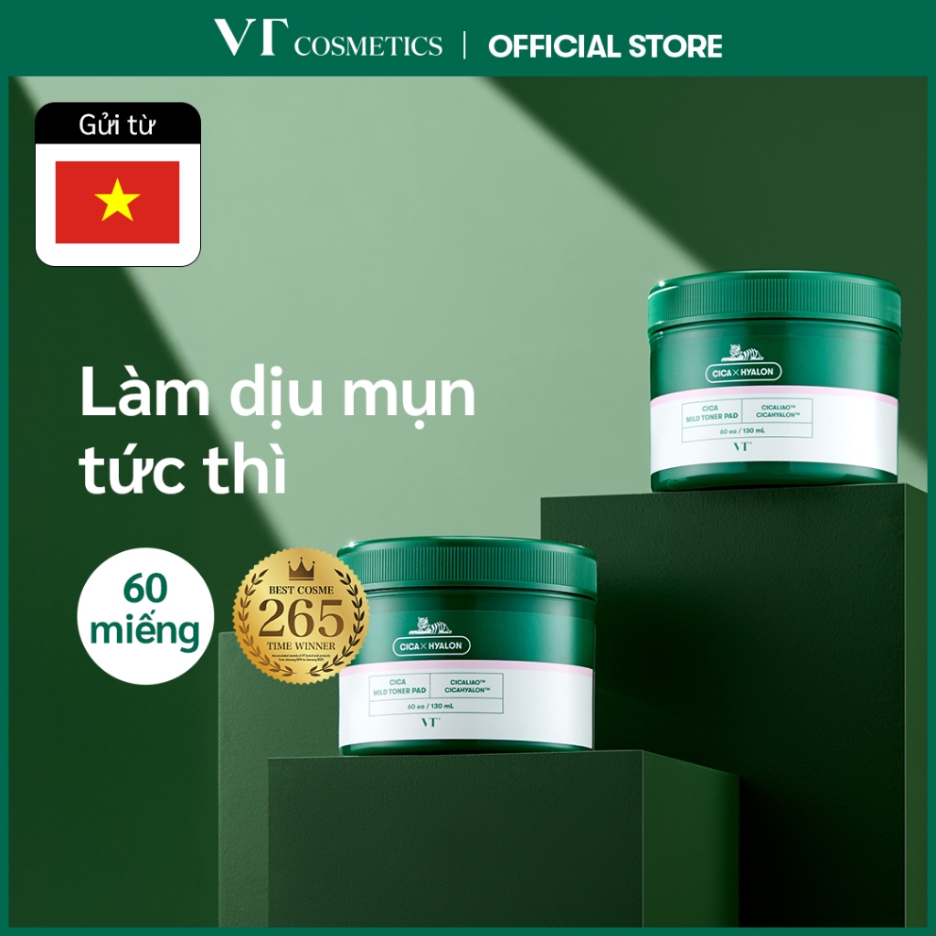[VT] BHA Toner Pad Dịu Nhẹ Làm Dịu Da Chiết Xuất Cica (60 miếng / 0,45% BHA Axit Salicylic) [Cửa Hàng Chính Hãng]