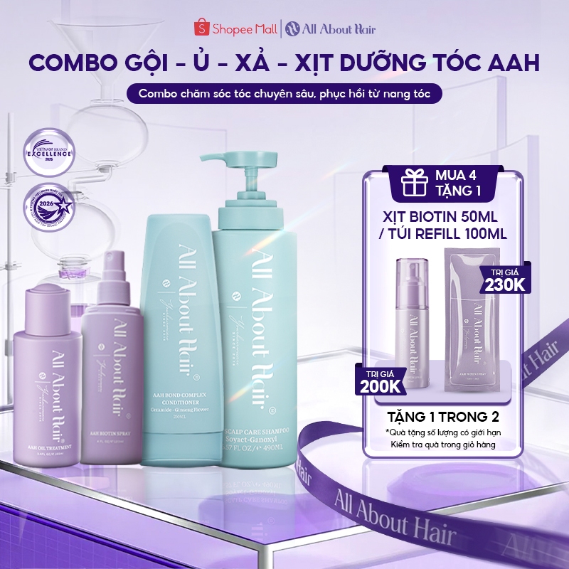 COMBO 4SP Gội, Xả, Ủ, Xịt All About Hair phục hồi & dưỡng tóc toàn diện