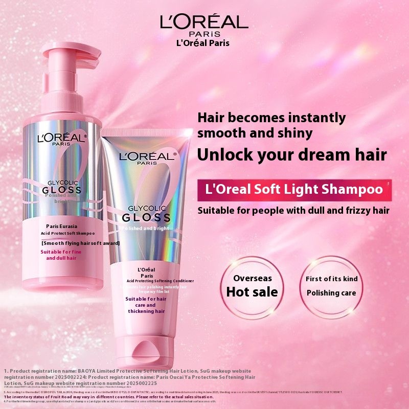 L'OREAL Dầu gội làm sáng da mềm đánh bóng bảo vệ axit L 'Oreal thích hợp cho tóc xoăn và xỉn màu với kết cấu mịn màng và sáng bóng. Dầu gội chính hãng mới
