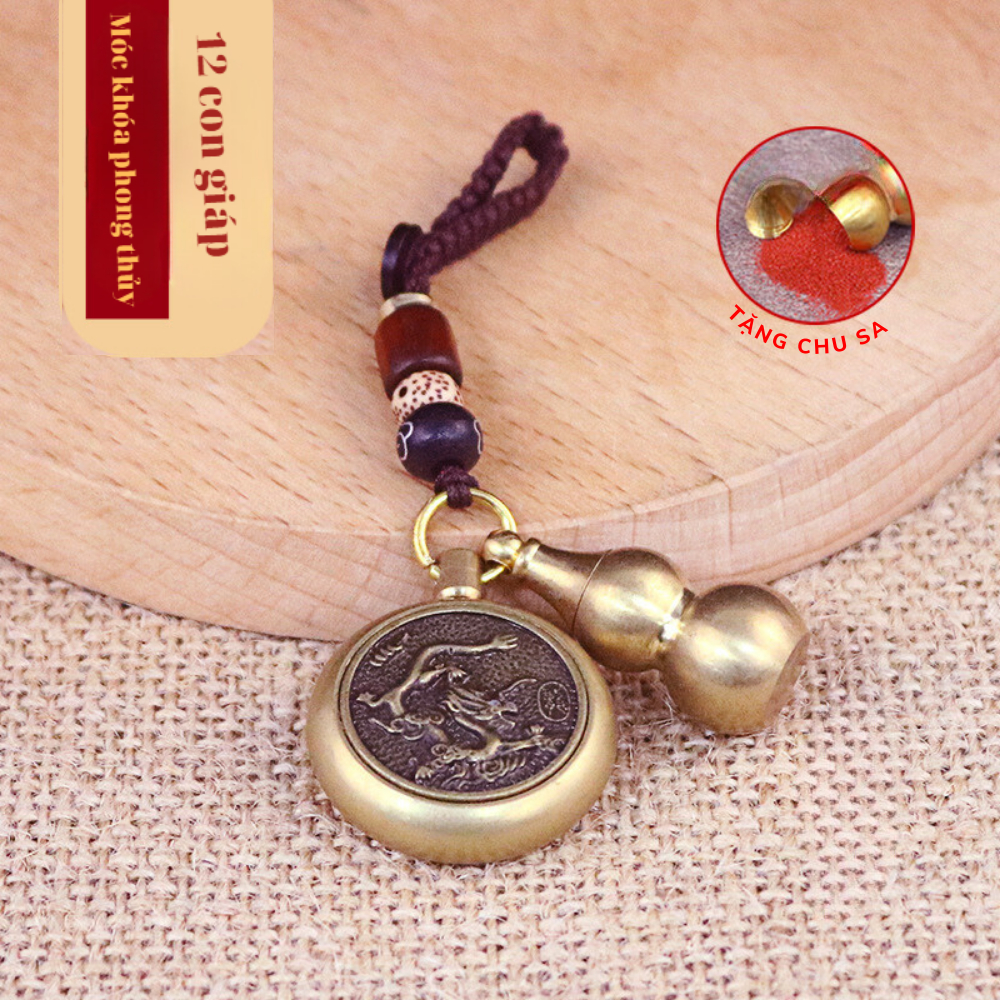 Móc khoá đồng thau, móc khóa 12 con giáp phong thủy bát xoay 360 độ kèm Hồ Lô BX-BĐ-M2 thuuhaa19
