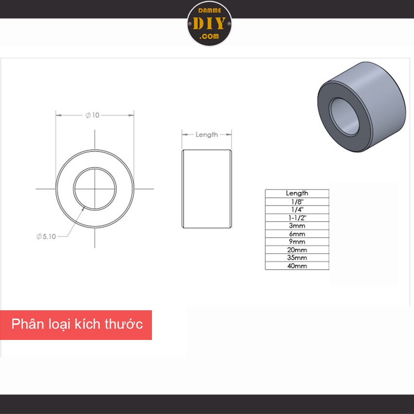 Bộ 5 Vòng Đệm Nhôm M5 M6 đôn cao cho Bánh Xe Vslot có nhiều phân loại cao độ
