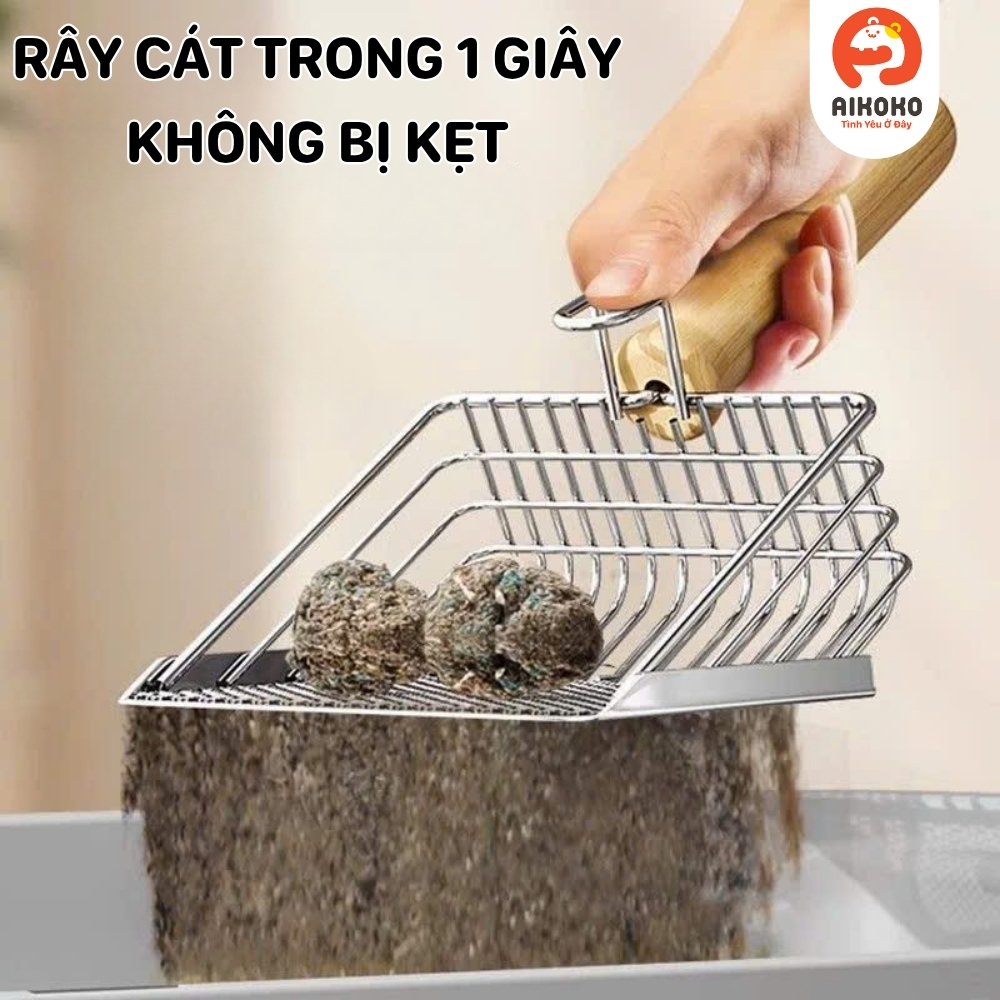 Xẻng xúc cát Inox cho Mèo có tay cầm gỗ - Bền, Đẹp, Tiện lợi và Dễ dàng vệ sinh