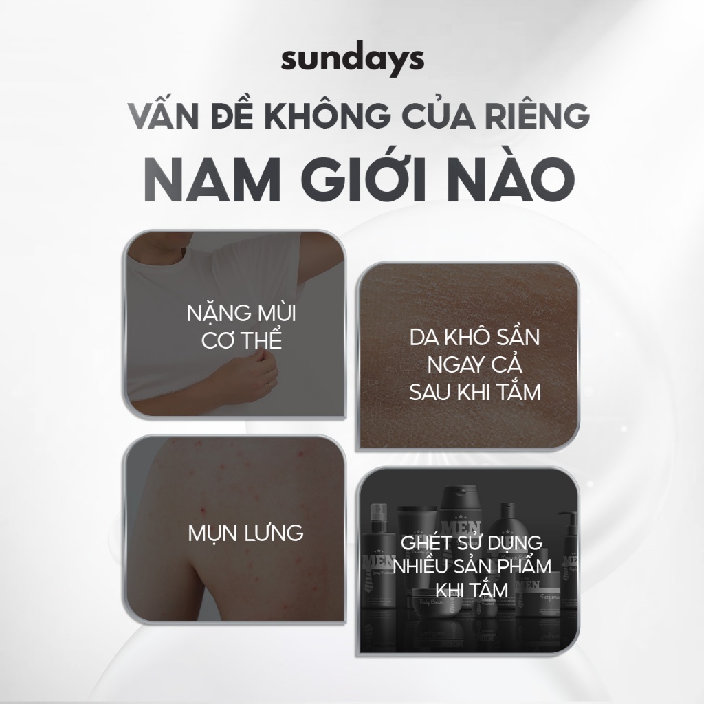 [TẶNG NƯỚC HOA] Combo Sữa Tắm Gội Nam Sundays 4in1 Giảm Mụn Lưng-500ml & Sữa Tắm Gội Nam 2in1-450ml Hương Nước Hoa