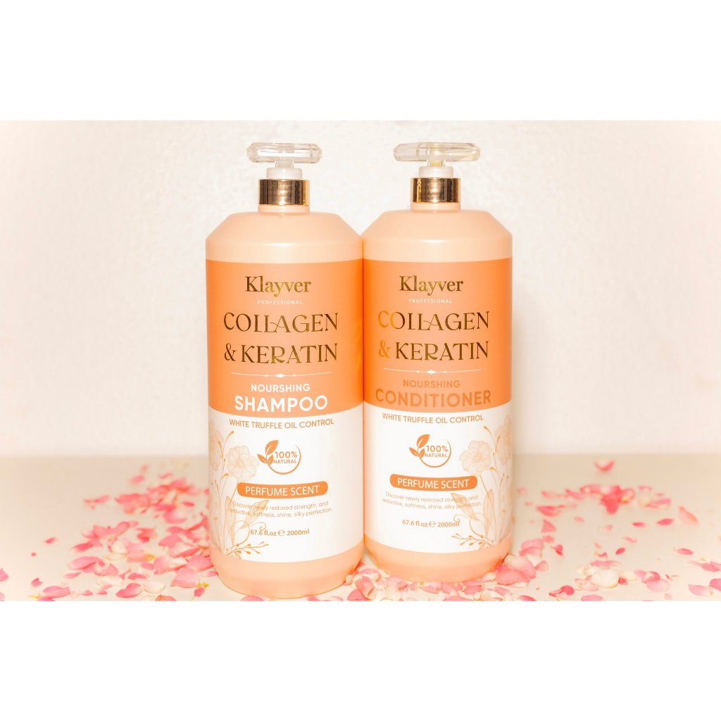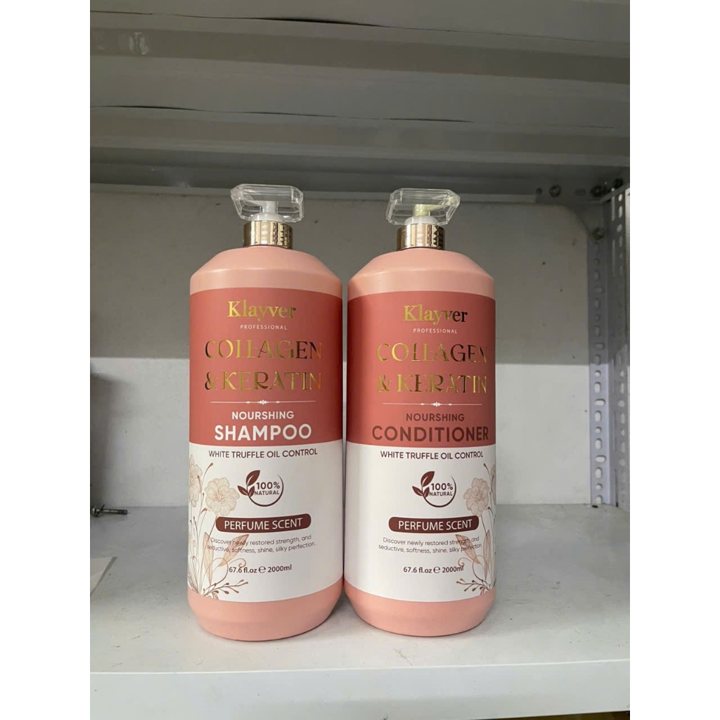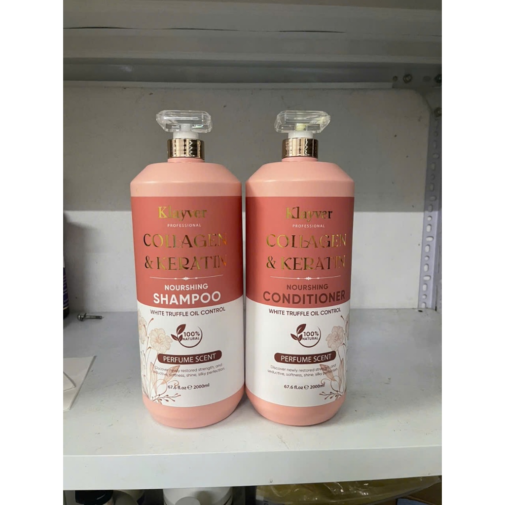 Cặp dầu gội xả 2000ml Klayver Collagen & keratin giảm rụng tóc, phục hồi hư tổn, hương nước hoa, dầu gội cặp 2000ml