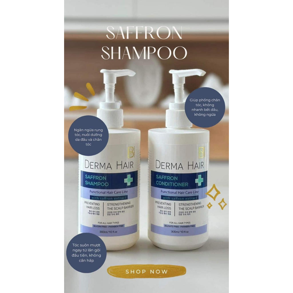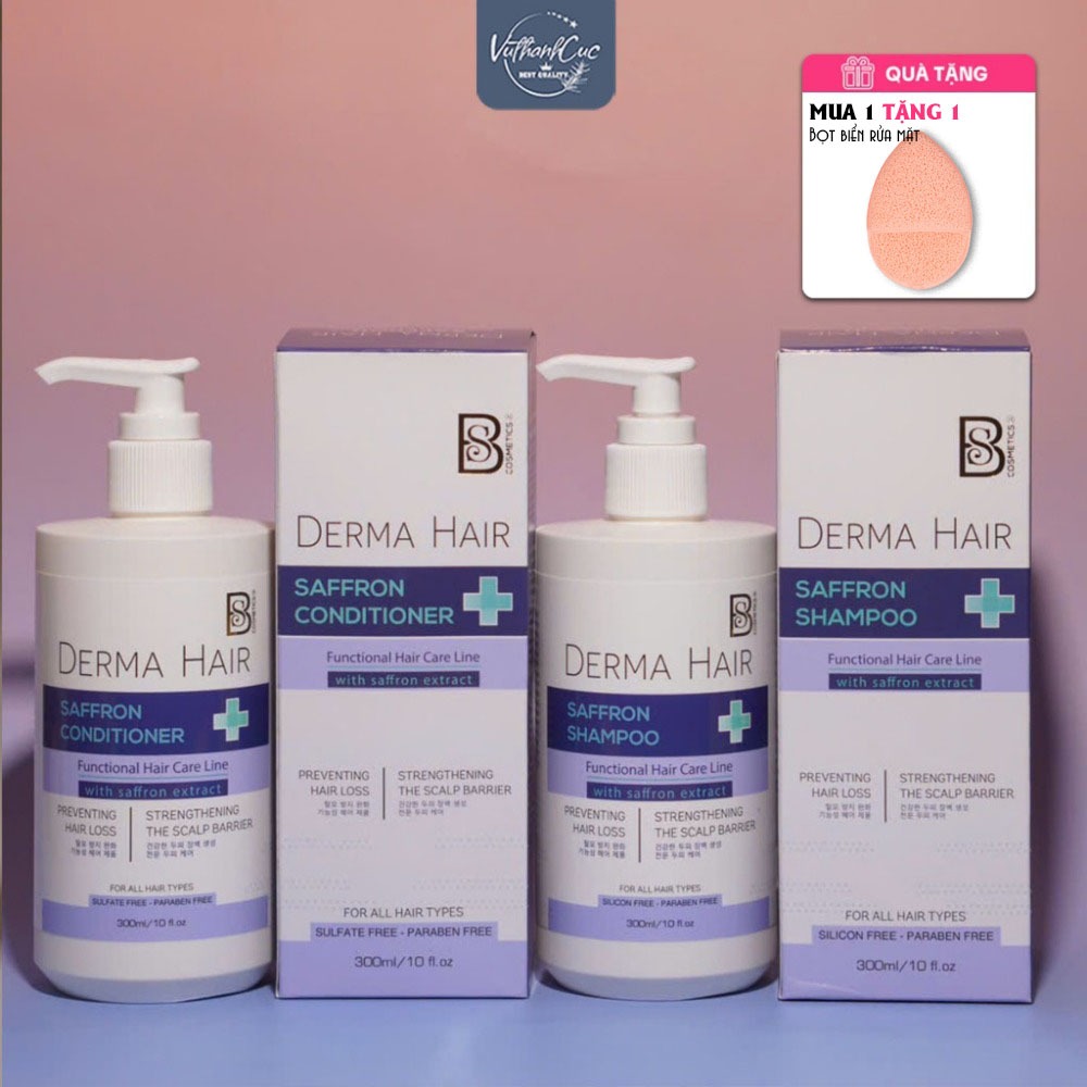 [TẶNG CỐC-CHÍNH HÃNG] Bộ Dầu Gội Xả Cao Cấp DERMA HAIR - SAFFRON SHAMPOO- BS COSMETICS [TẶNG CỐC TẠO BỌT] [TÂY Á]