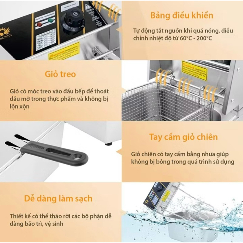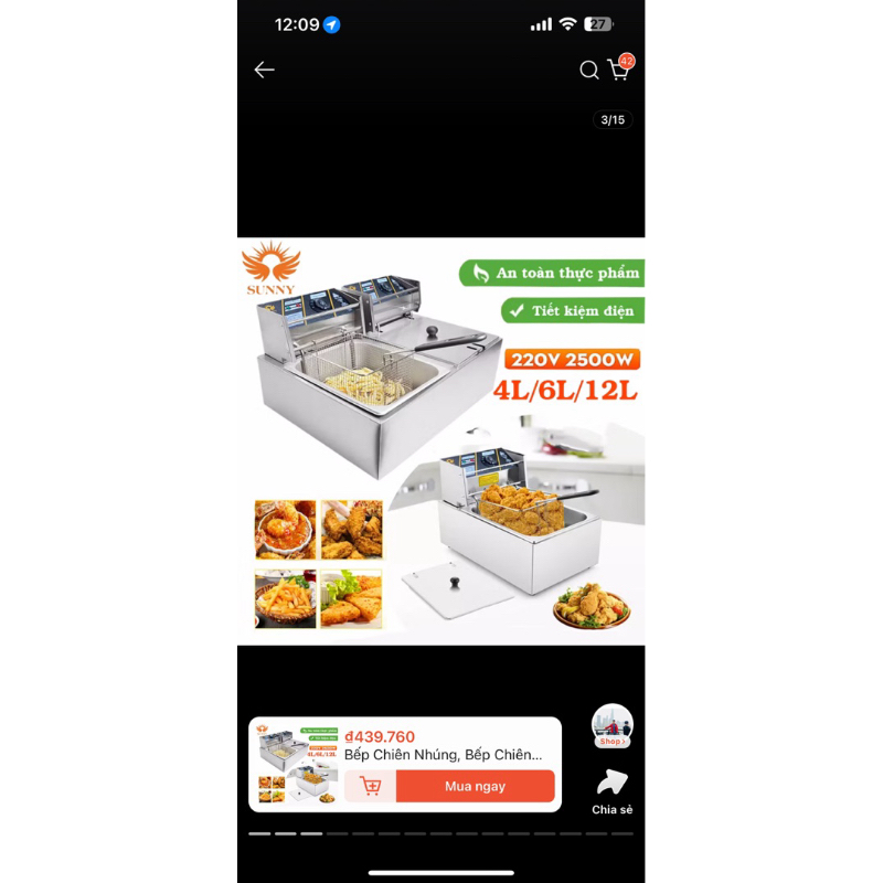 Bếp chiên nhúng ,Bếp chiên SUNNY 6 LÍT siêu bền [BH 12 tháng]