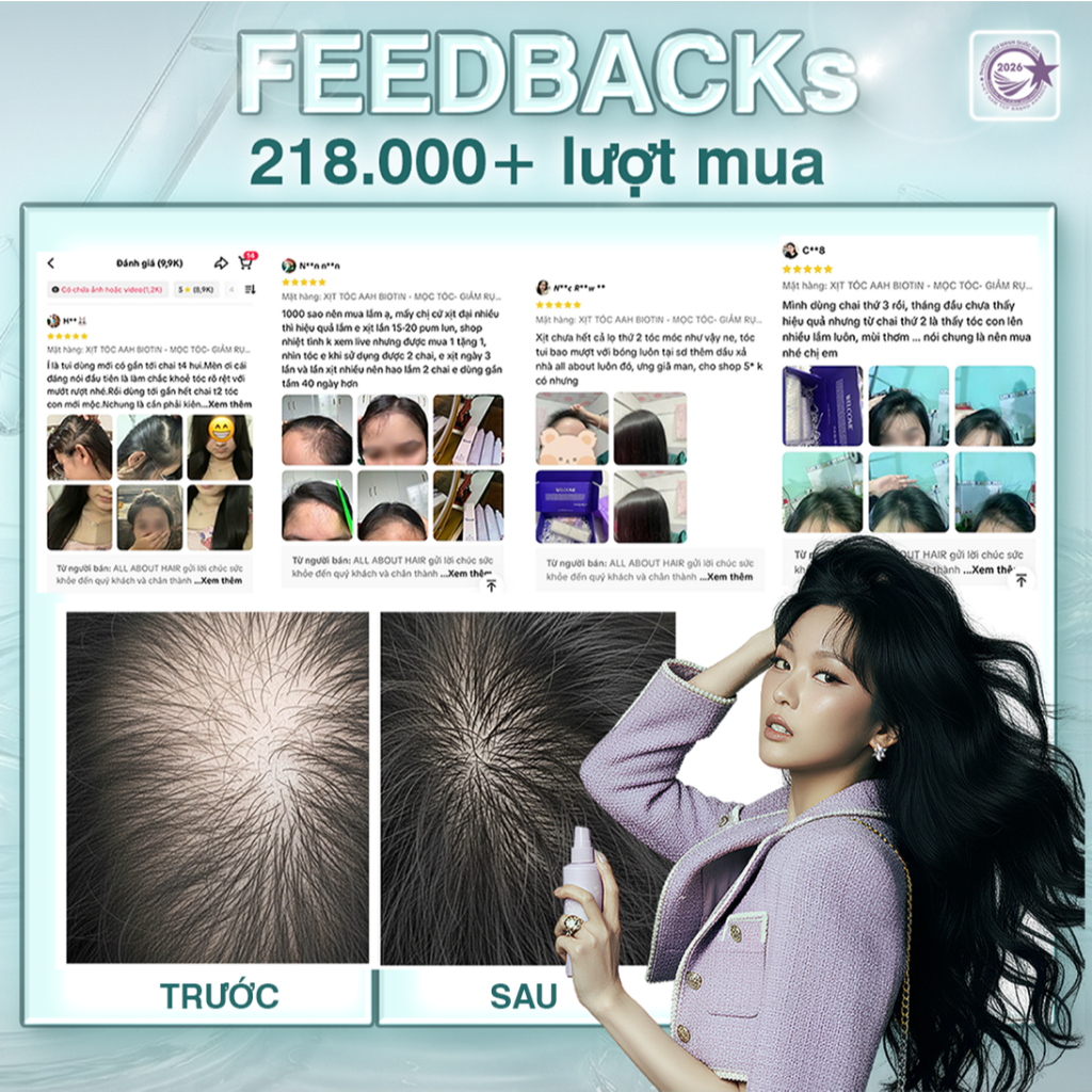 Xịt dưỡng tóc Biotin Thuần chay AAH ALL ABOUT HAIR hỗ trợ tóc chắc khỏe giảm rụng bóng mượt Spray Vegan 50ml