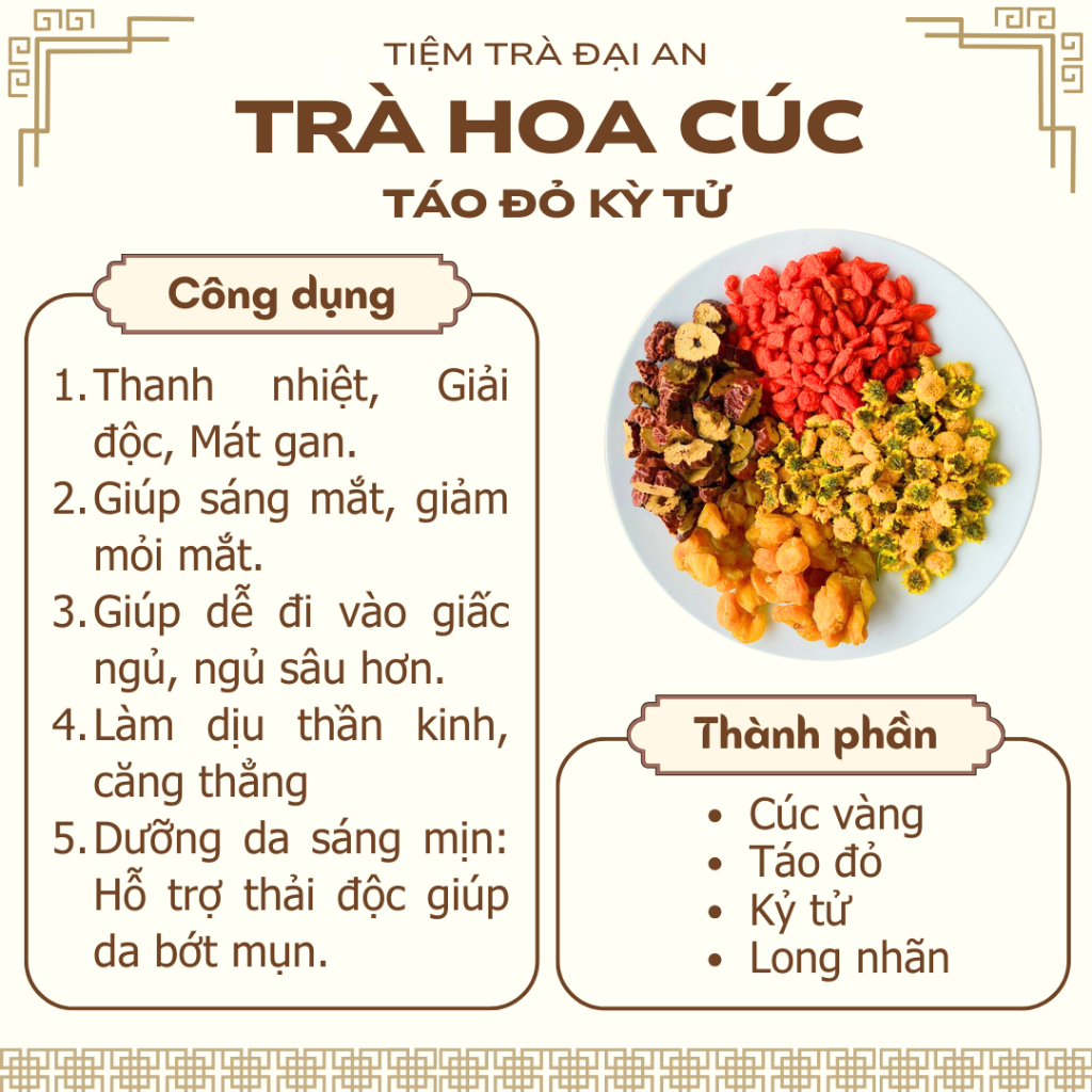 Trà Hoa Cúc Táo Đỏ Kỳ Tử Đại An - Thảo Mộc Sáng Mắt, Thanh Nhiệt, Giải Độc, Giúp Ngủ Ngon, Đẹp Da