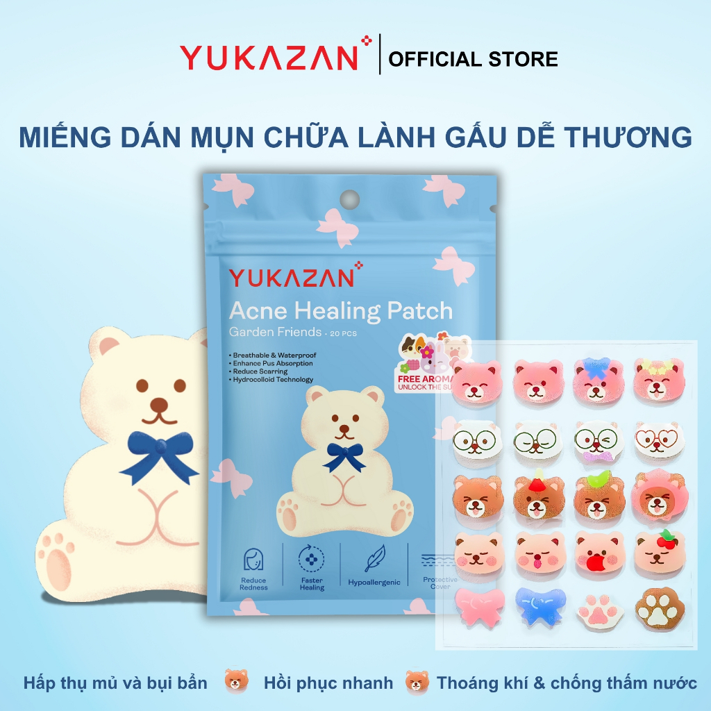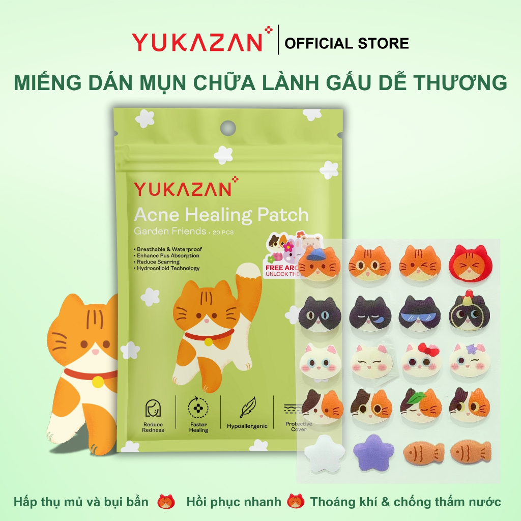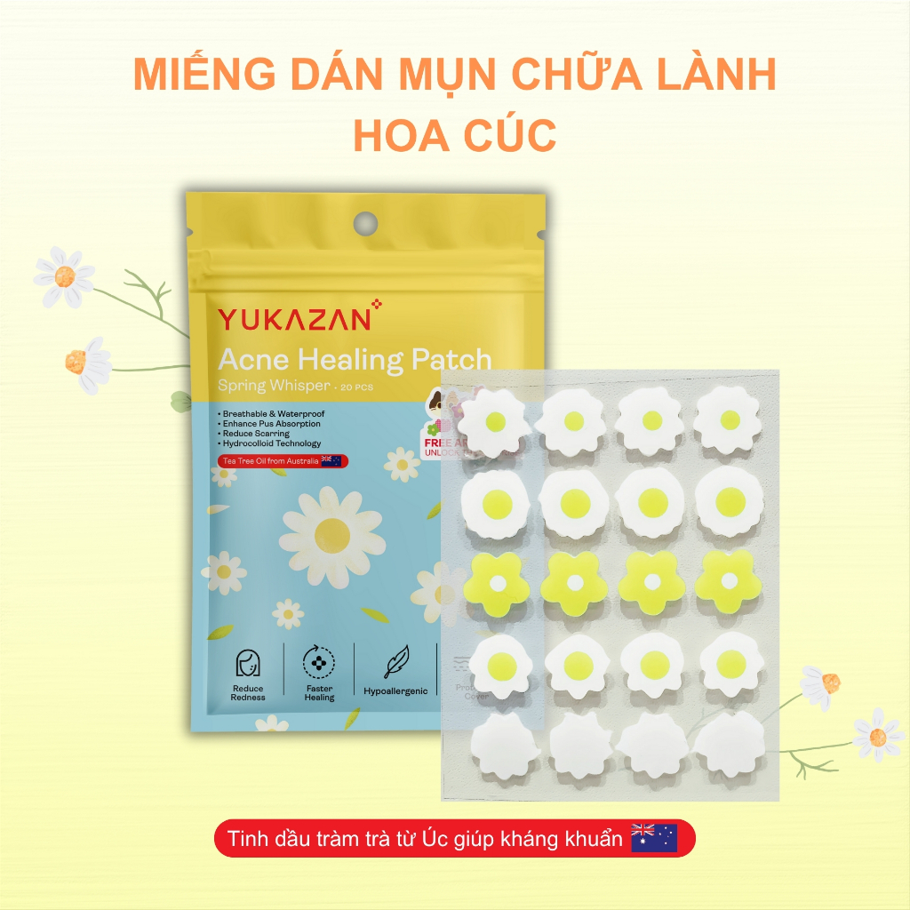 Miếng dán mụn Yukazan Acne giúp hút mụn làm dịu da và các nốt mẩn đỏ tràm trà kháng khuẩn 20 miếng