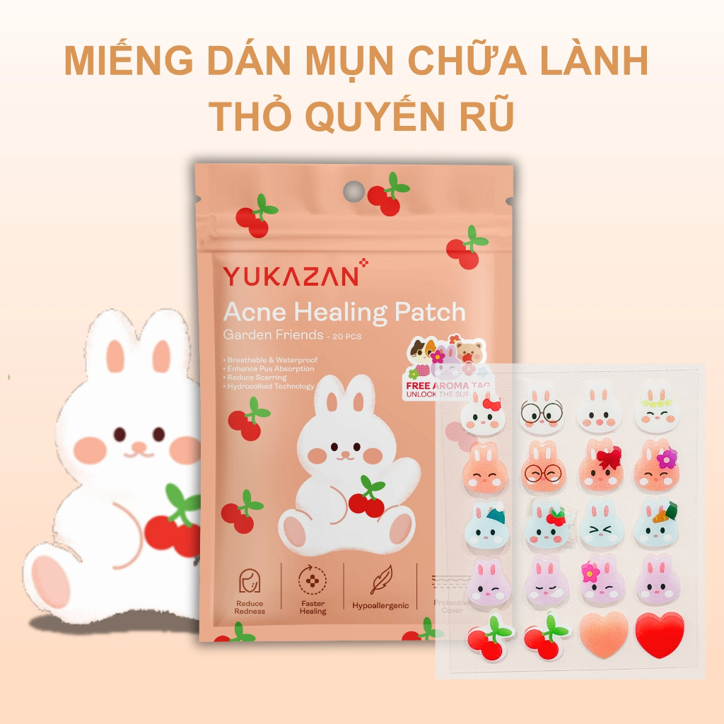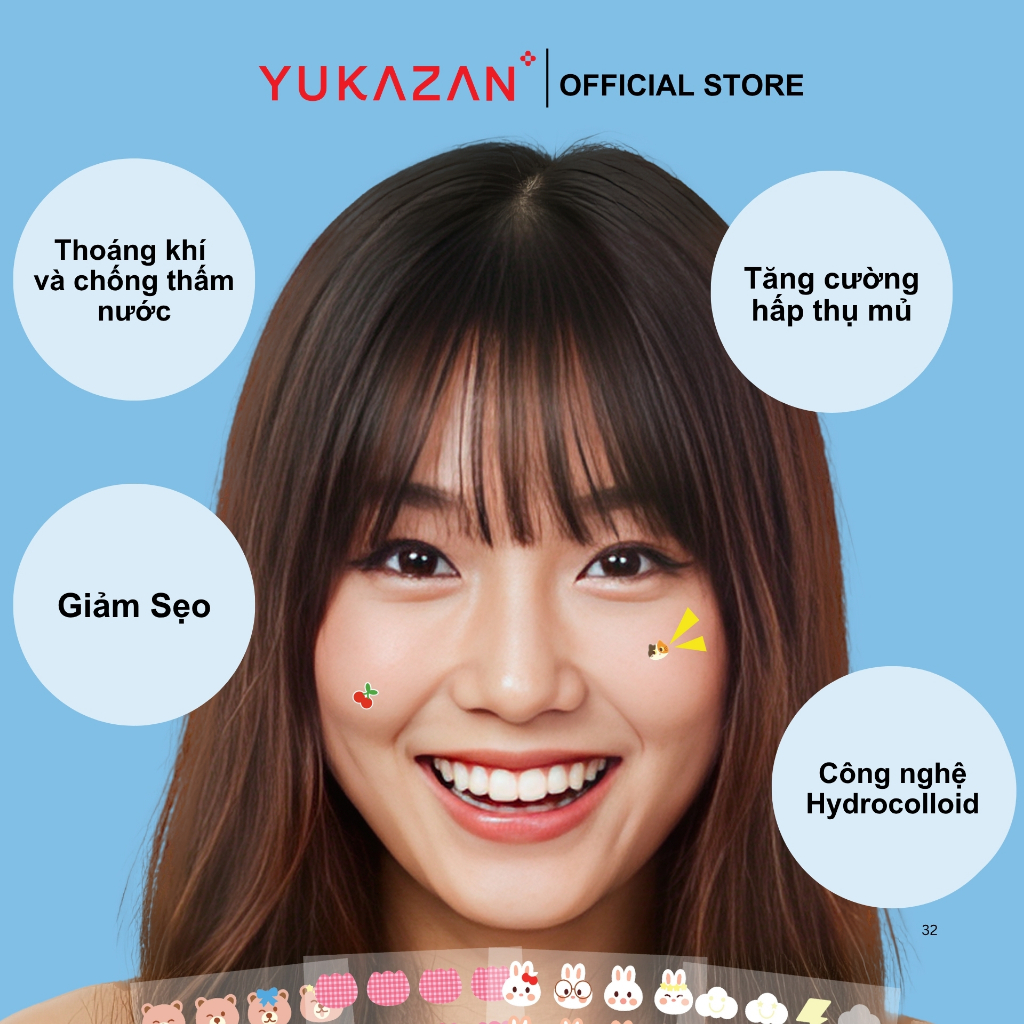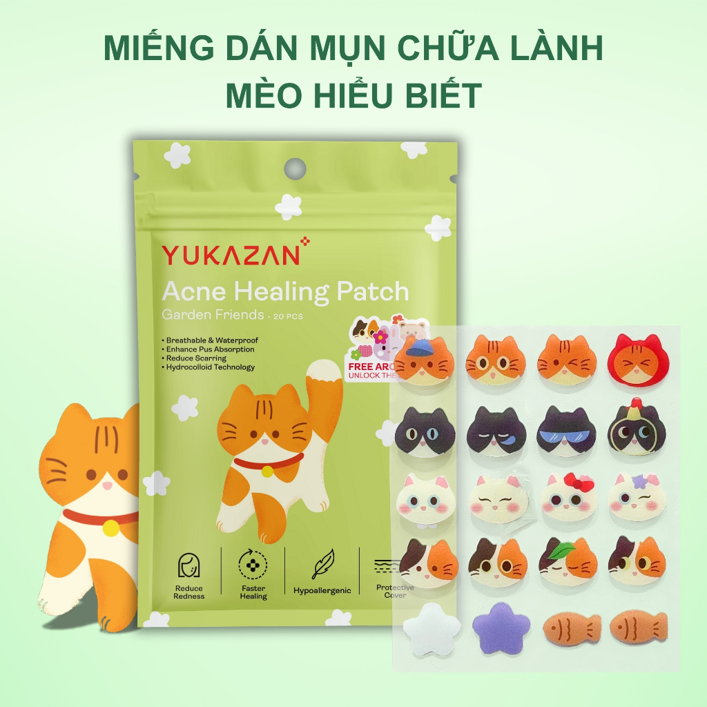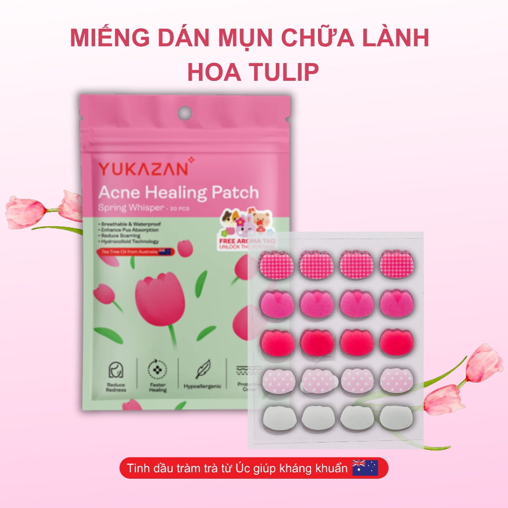 Miếng dán mụn Yukazan Acne giúp hút mụn làm dịu da và các nốt mẩn đỏ tràm trà kháng khuẩn 20 miếng