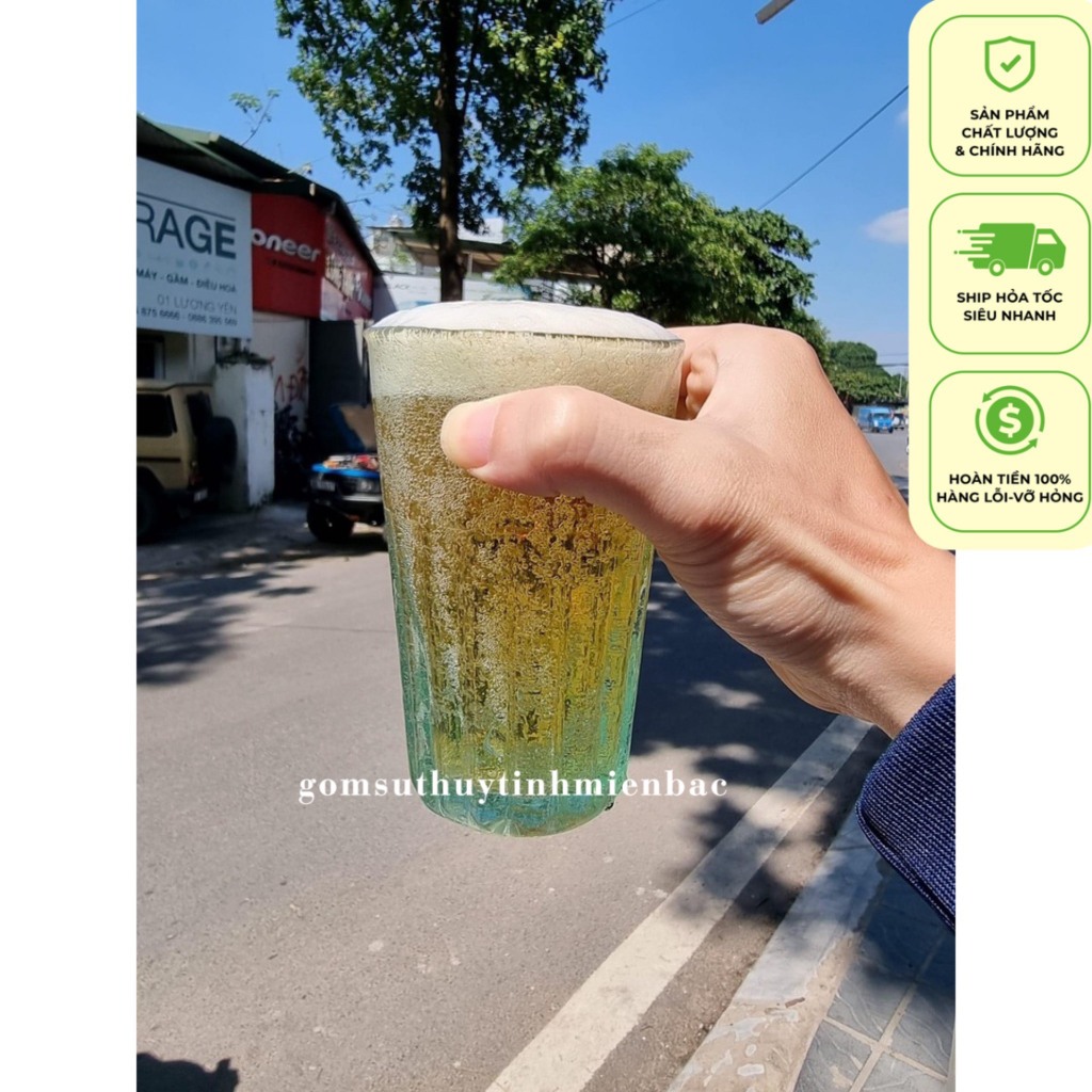 Cốc/ Ly Thủy Tinh Bia Hơi Hà Nội Xanh Bọt Cổ Điển Thủ Công 330ml/220ml Dày Dặn Đầm Tay - Hàng Loại 1